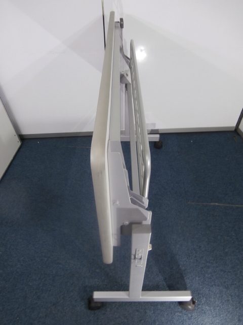 - 一部不具合あり天板歪み、アジャスター無し、キャスター使用不可ようなそのテーブルの本来の効用を果たすための機能以外の一部が使用不可な状態。(例、キャスターロッ ク機能使用不可、棚板無し等がある。)