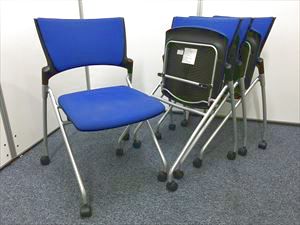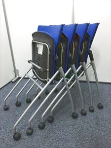 【売れ筋】【会議用ネスティングチェアー】イトーキ製 マノス ブルー キャスタ-付き、折りたためて、収納にも便利- 名古屋本店
