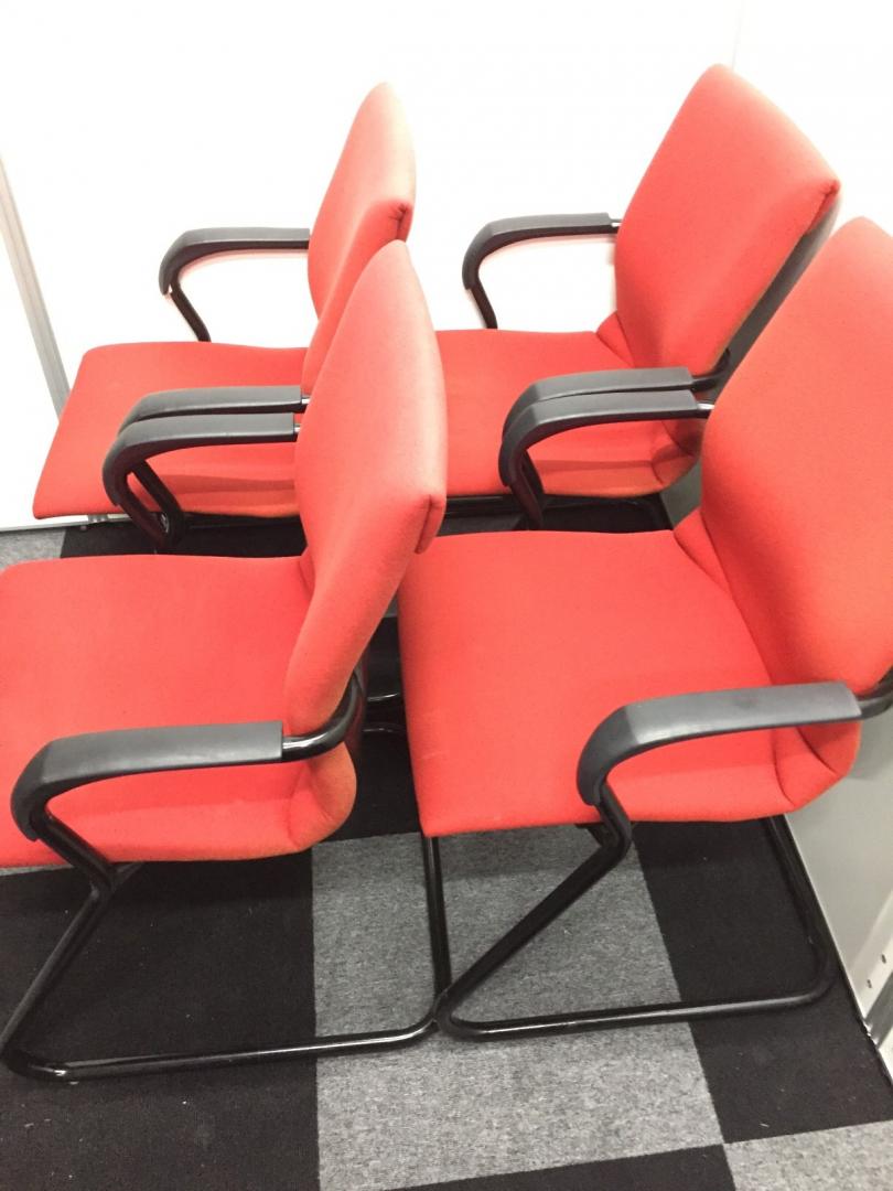 明るいレッドカラーの会議チェア入荷!座り心地も抜群でデザイン製にも優れているので受付や面談室にもおすすめ!- 在庫数