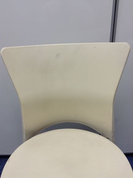 - かなり強い濃い黄ばみ・変色が商品全体にある。(例、座面・背もたれ、脚部等にある。)