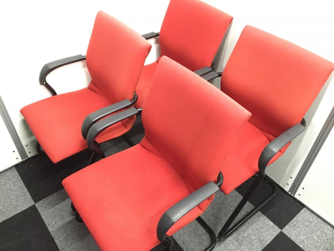 4脚セット!ミーティングスペースやリフレッシュスペースにおすすめな明るいレッドカラー!- 在庫数