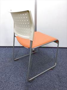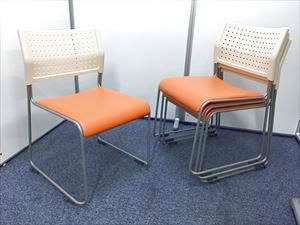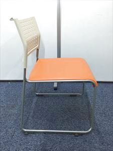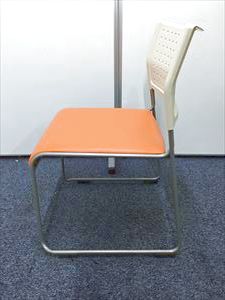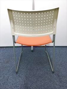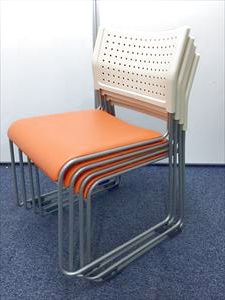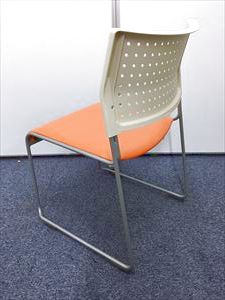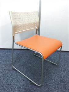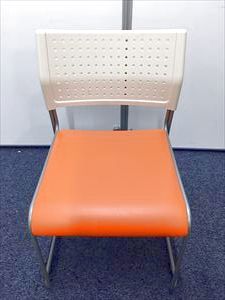 【定番会議用チェアー】スタッッキングチェアー オレンジ 背:樹脂:ホワイト 座:ビニール:オレンジ- 名古屋本店
