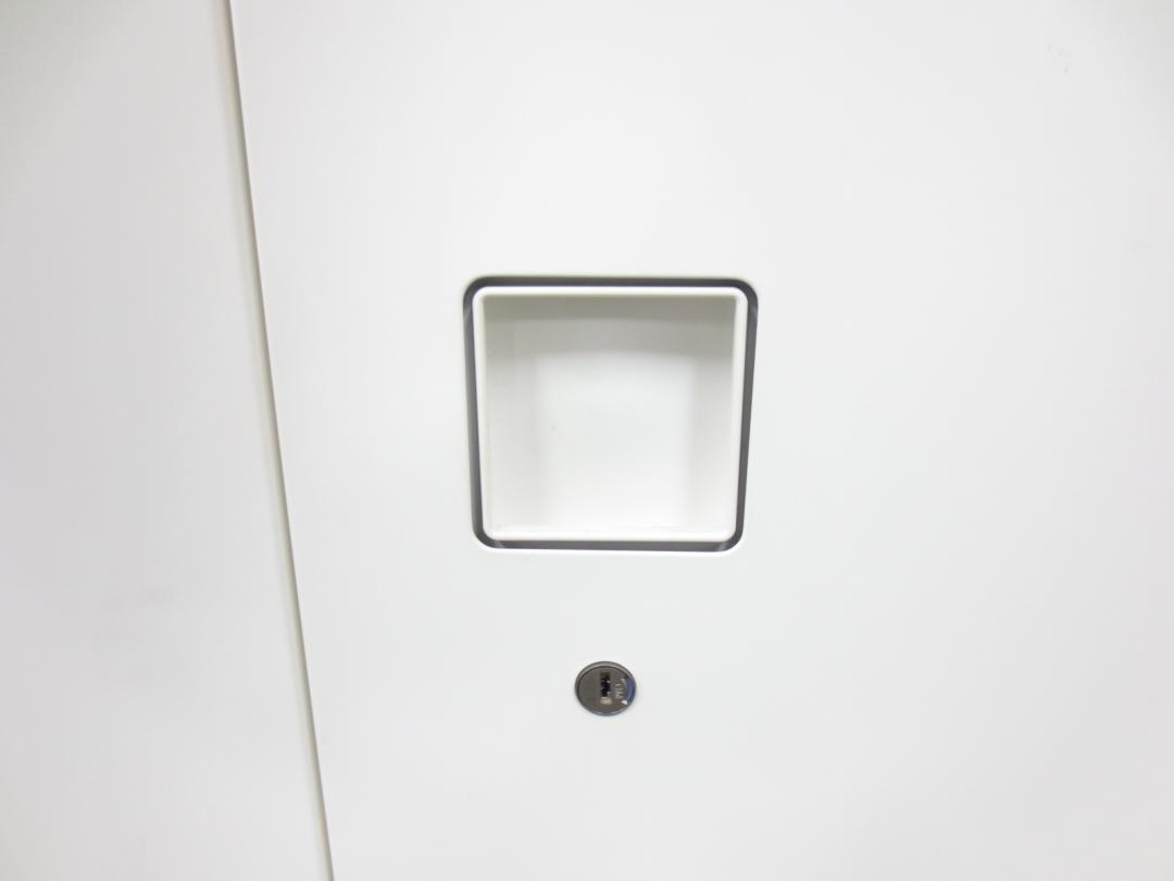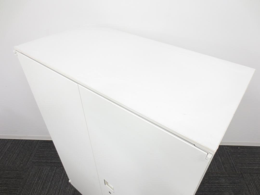【オフィスの書類をスッキリ整理!取っ手がどの方向からでも開くマルチハンドルが人気!】■オカムラ(okamura)製 レクトラインシリーズ(Rectline) 両開き書庫 ローキャビネット ■天板付き ■シリンダー錠 ■ホワイト