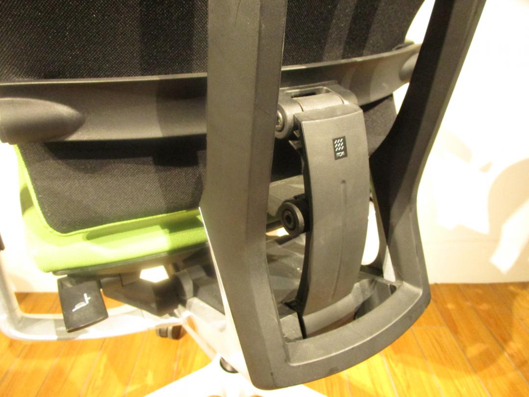 見た目は少し硬そうに見えるエラストマー素材ですが、座ってみると程よいしなり具合のやわらかな座り心地で、背中が痛くなるようなことはまるでありません。面ではなく線で支えることで、背面の通気性の良さは抜群です。
