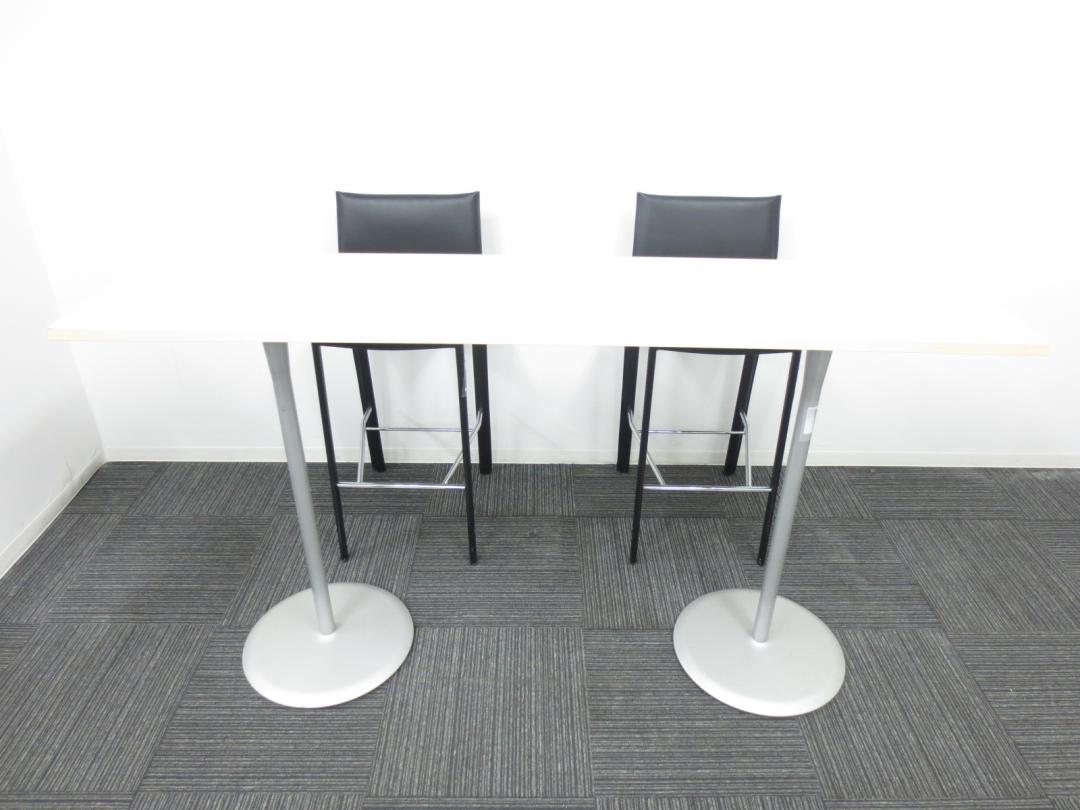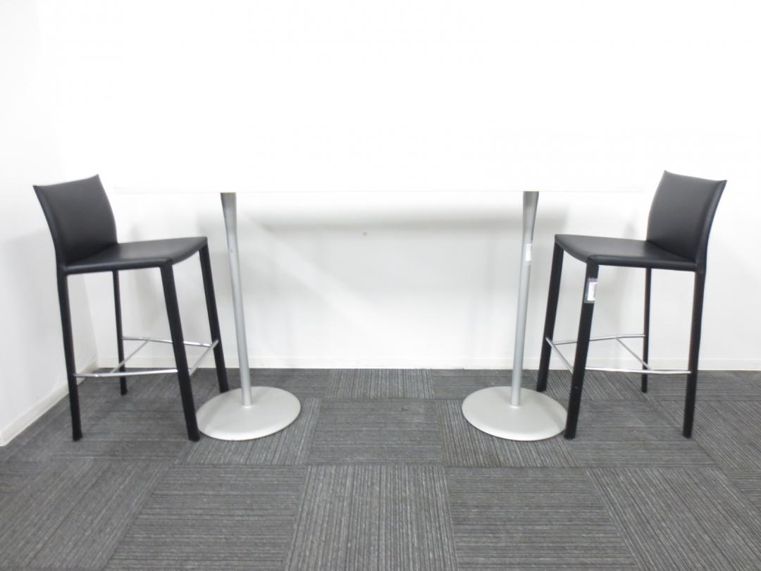 【お買い得セット商品】【10%OFF価格】◆オカムラ製 ナチュラル天板のハイテーブル&◆ハイチェア2脚 ブラックカラー- 春日部・越谷店