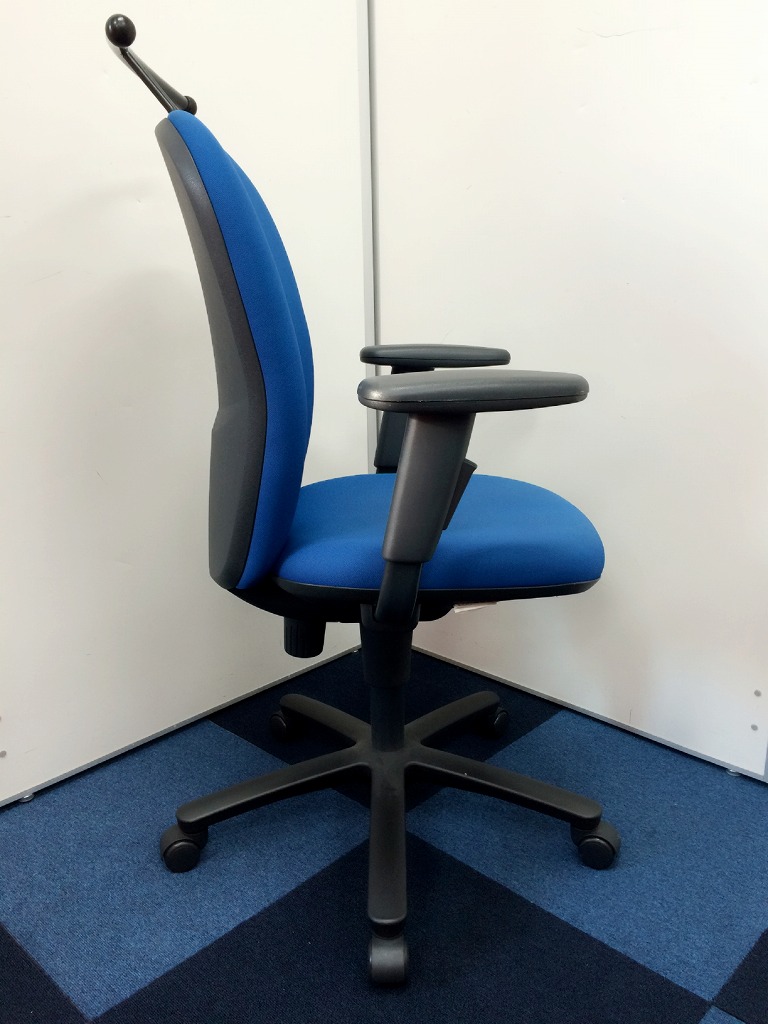 【スタンダードなデザインで座り心地抜群!】■イトーキ(ITOKI)製 リエット(Lietto)チェア 肘付きハイバック ■可動肘 ■ネイビーブルー×ブラックシェル