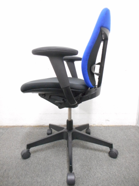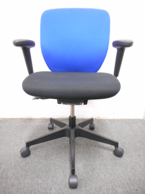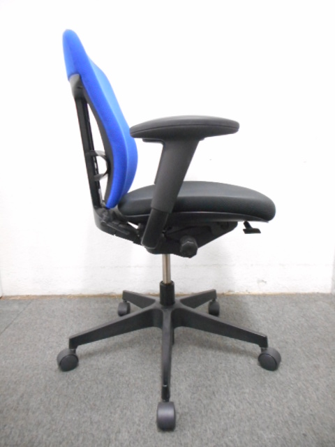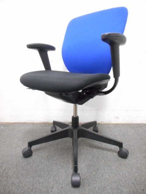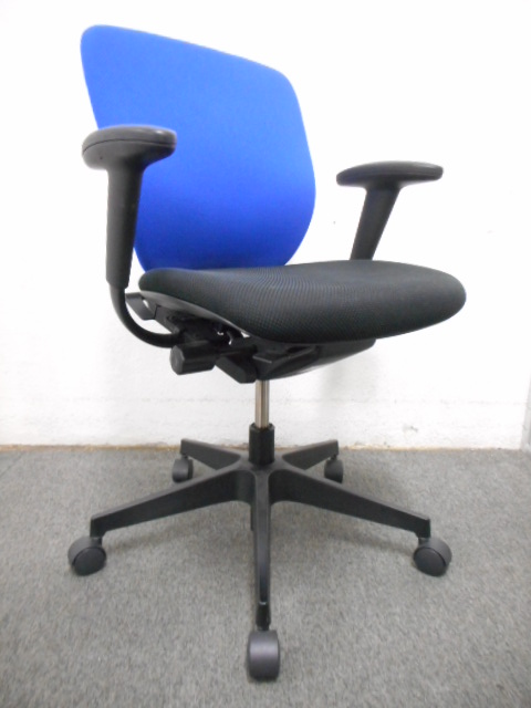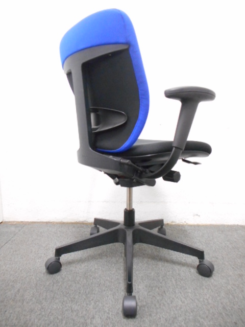 【一人ひとりにマッチする座り心地!姿勢の変化にフレキシブルに対応!】■イトーキ製 プラオ 肘付ローバックチェア ■サークル肘 ■背面ストロングブルーブルー&座面ブラック