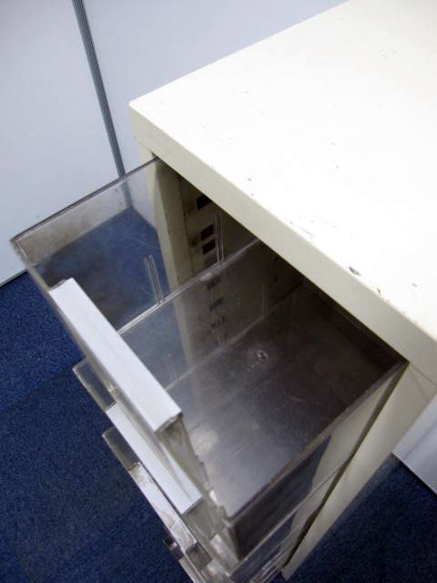 - 多数不具合あり引出の開閉不可、施錠不可、棚板無しといったその書庫の本来の効用を果たすための機能以外の多数が使用不可(例、扉、引出の開閉がしづらいなどがある。 )