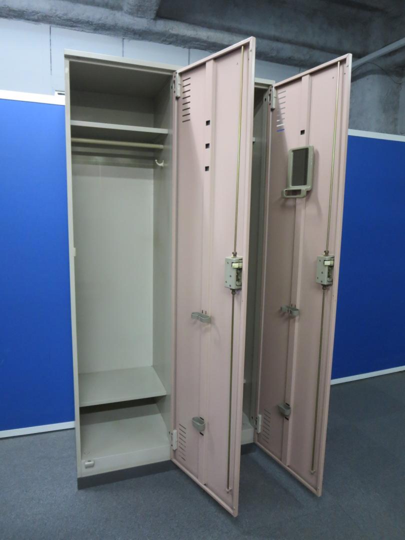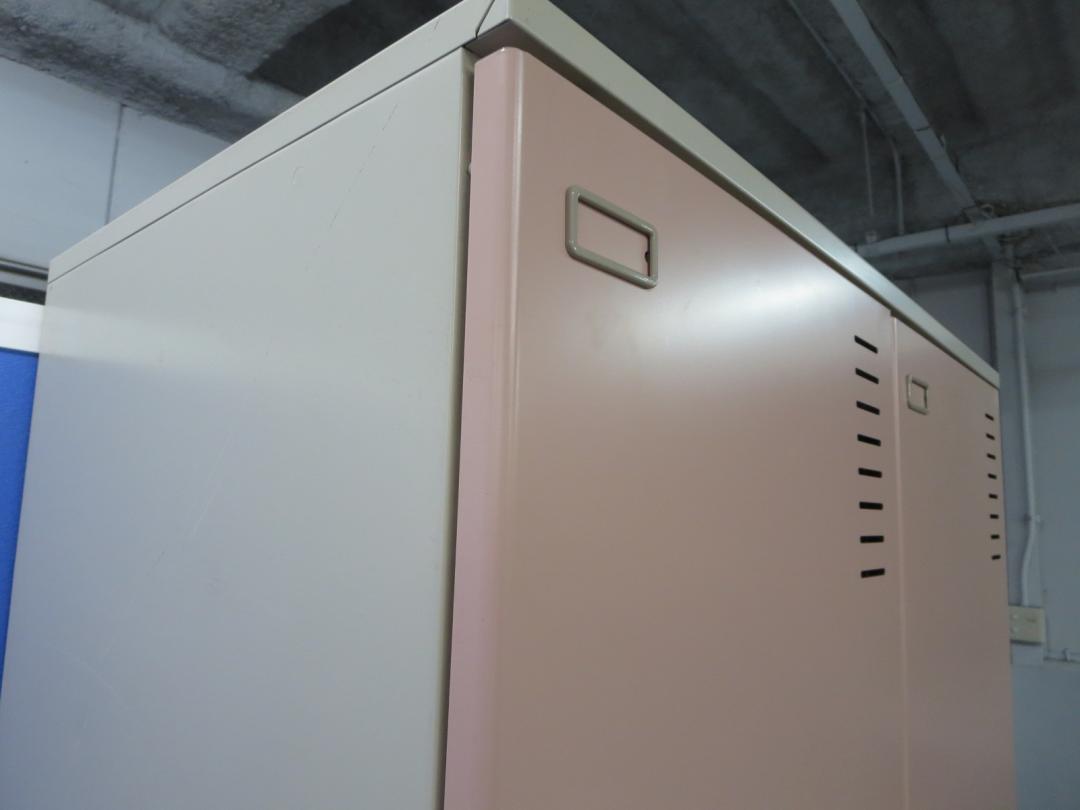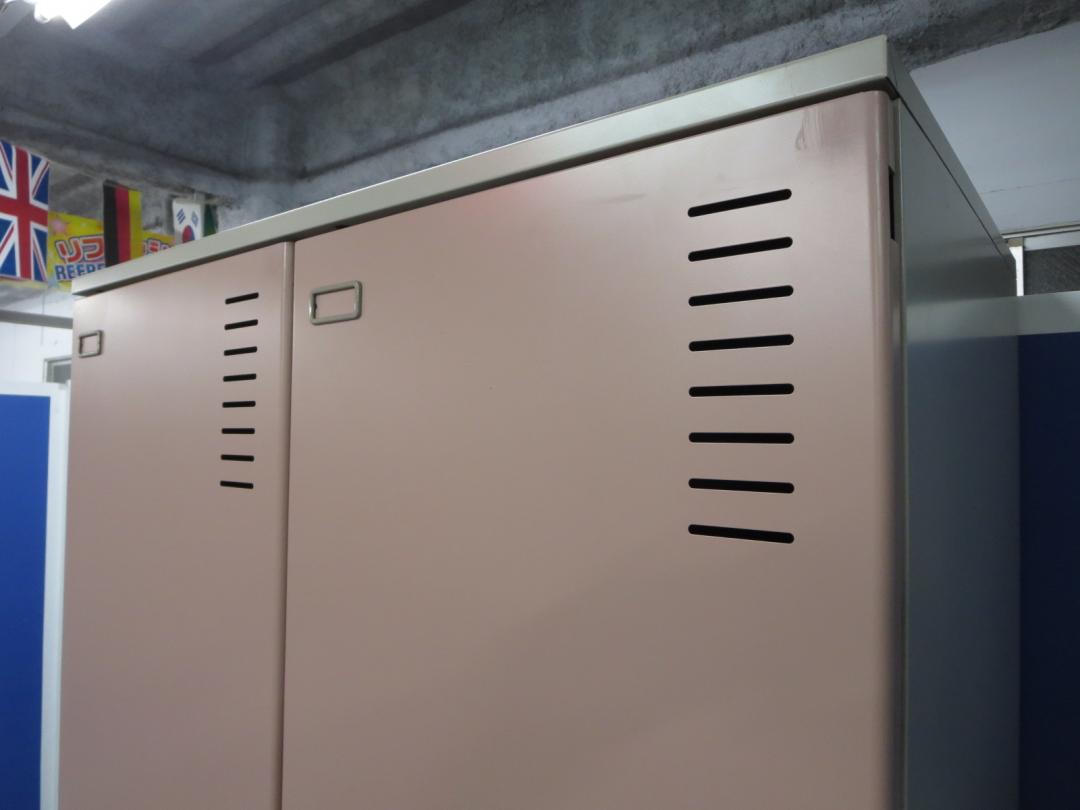 【女性用としておすすめ!】■【1人あたりの幅が広い!】2人用ロッカー(ピンク)■コクヨ PLKロッカー(ベース付)【中古でも安心!鍵付き商品】- 川崎店