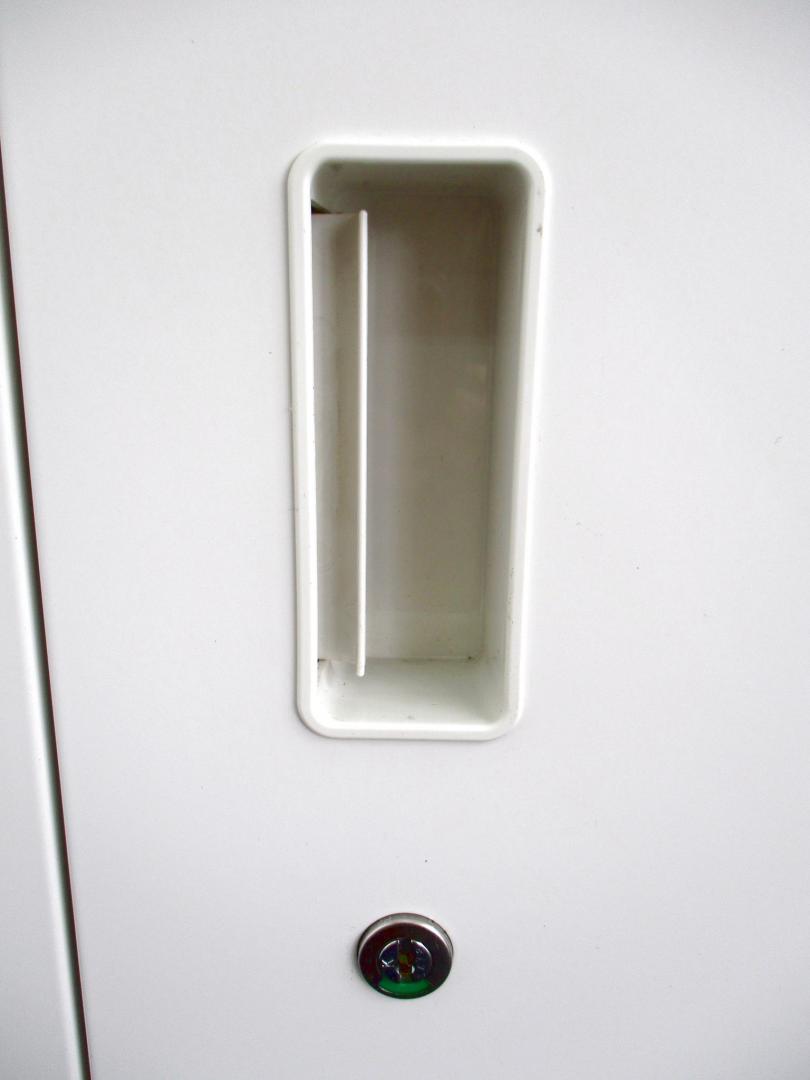 - 一部不具合ありそ引出の開閉不可、施錠不可、棚板無しといったの書庫の本来の効用を果たすための機能以外の一部が使用不可(例、扉、引出の開閉がしづらいなどがある。 )