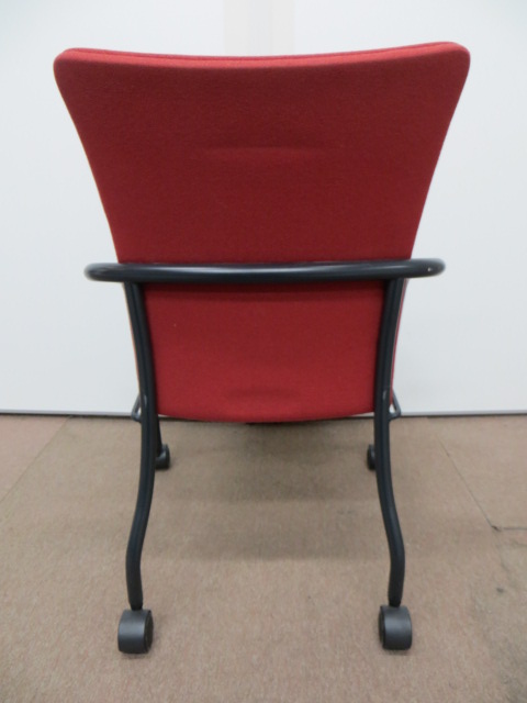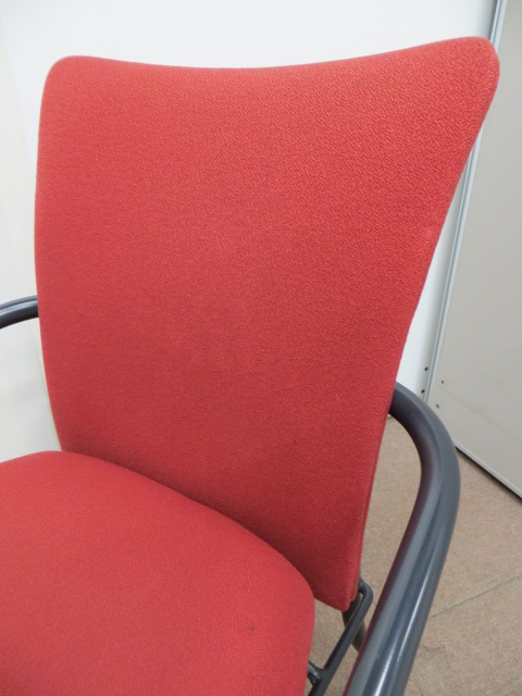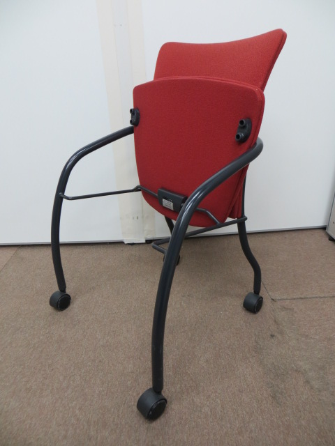 【イトーキ製】平行に重ねられるネスティングチェア2脚セット 鮮やかなレッド【中古オフィス家具】- 在庫数