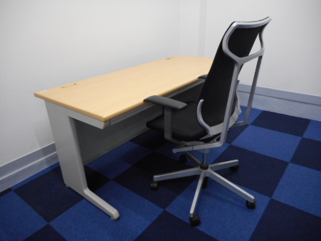 【KS】[通常54,000円→セット価格47,000円]幅1600mm平デスク&3段キャスター付きワゴン&ハイクラスオフィスチェア肘付[全て岡村製作所で統一]- 茨城南店
