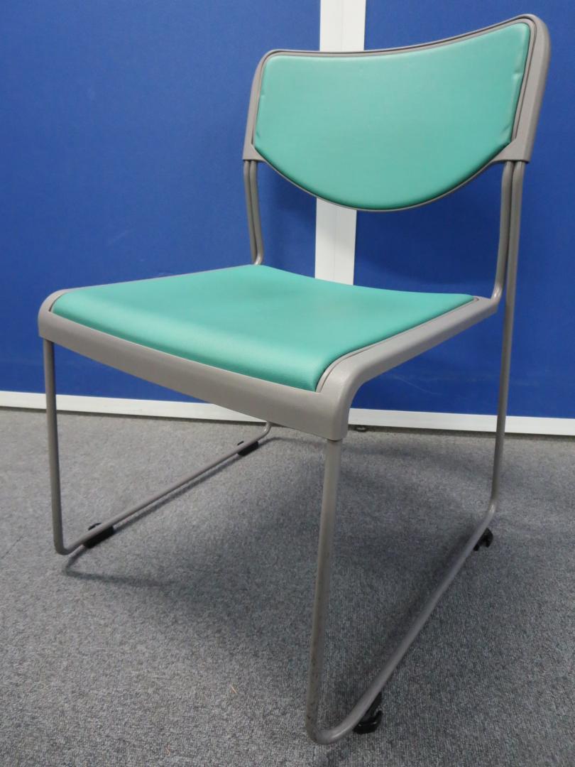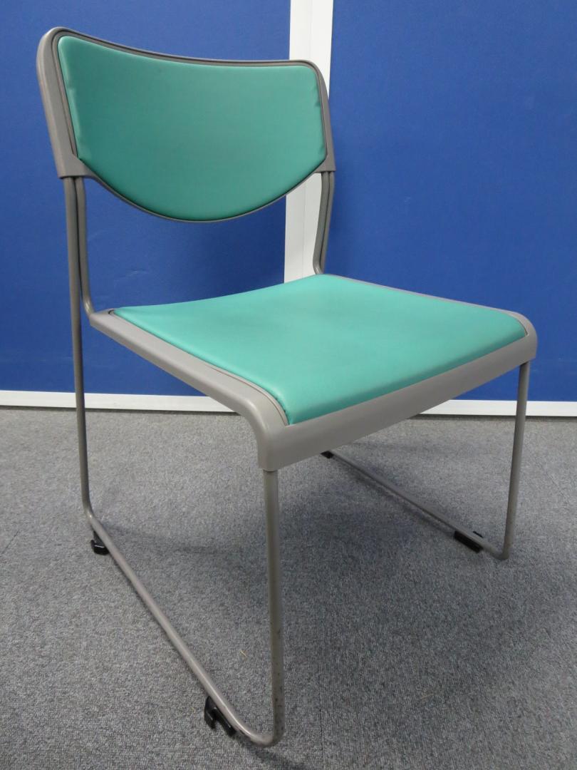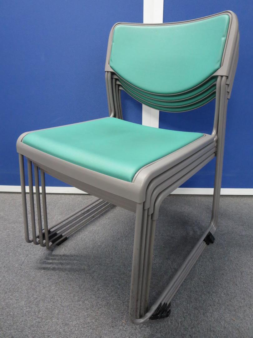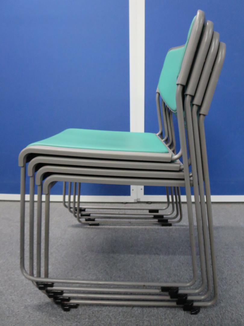 【4脚セットでお買い得!】■スタッキングチェア4脚セット■グリーン【お手入れ簡単なビニールレザー張り】■イトーキ【ITOKI】- 川崎店