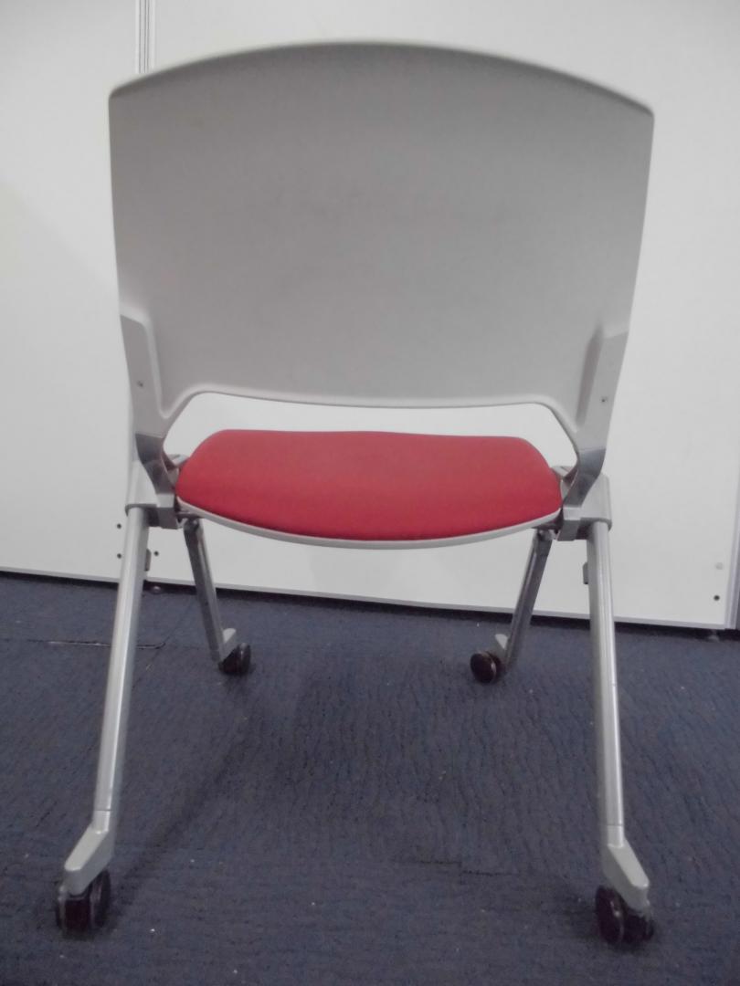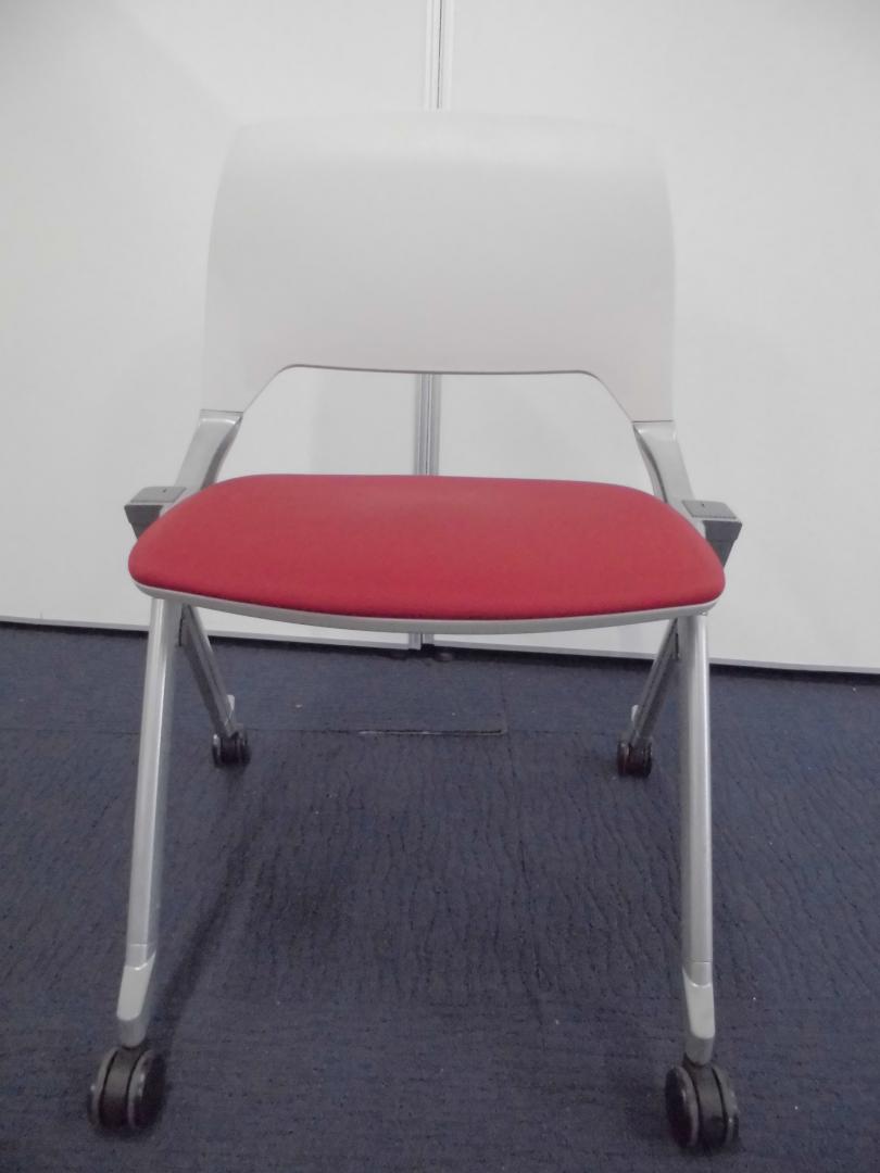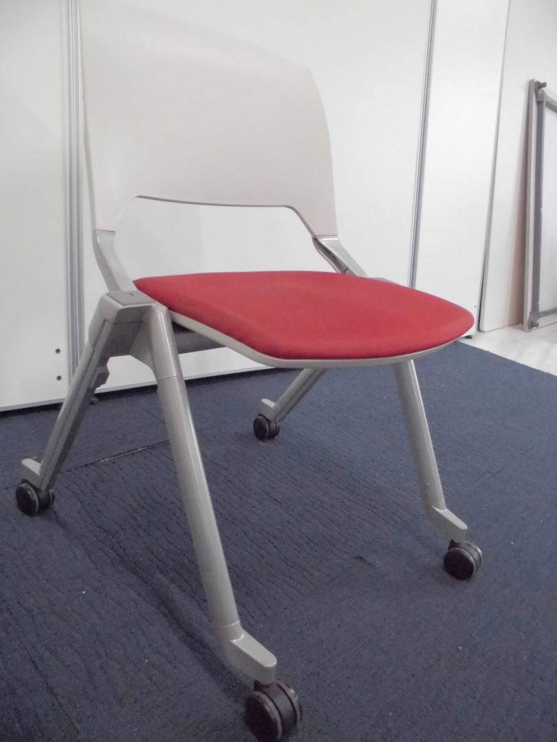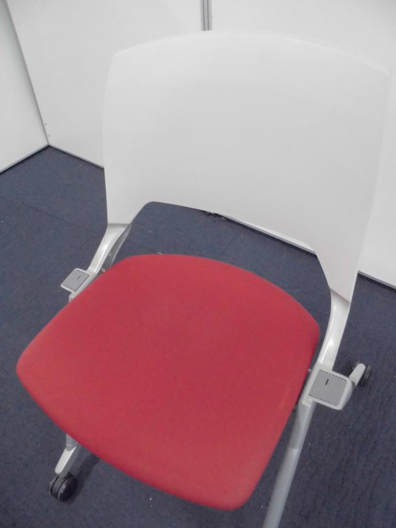 【オシャレな色合い】キャスター付チェア|スタッキング・ネスティング両用!【背:ヌードタイプ / 座:赤】- 立川・八王子店