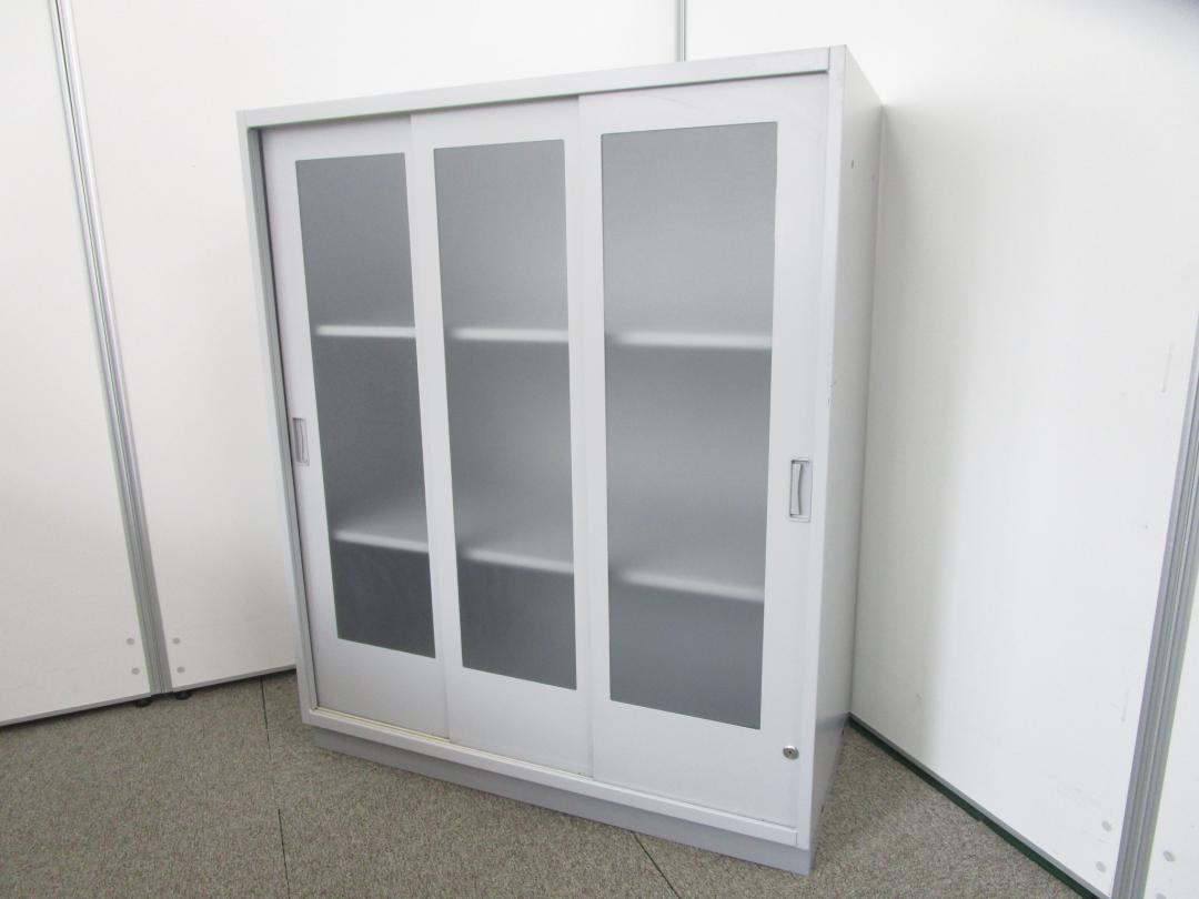 イトーキ製シンラインシリーズのガラス3枚引き違い書庫を入荷致しました!!