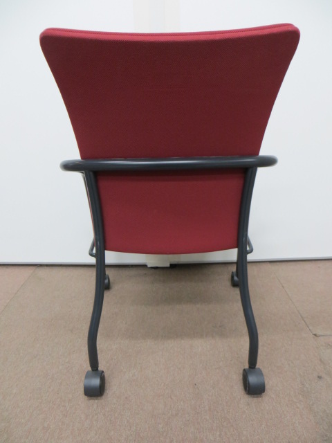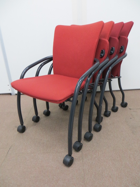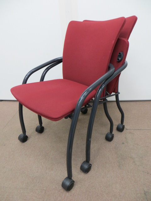 【イトーキ製】平行に重ねられるネスティングチェア 渋みのあるレッド【中古オフィス家具】- 在庫数
