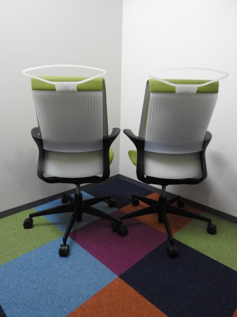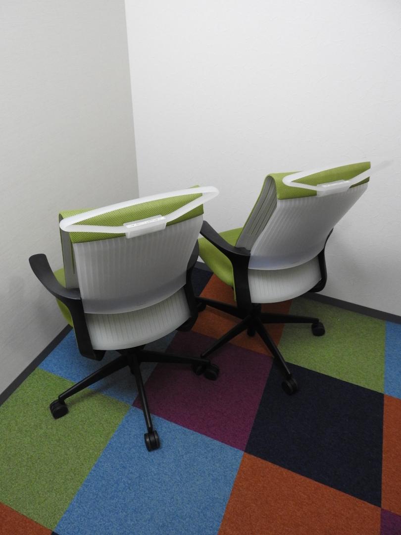 チェアはデスクの上や中に入れて保管しております。もちろん試座も可能ですので、お気軽にお申し付けください!