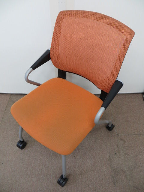 【重ねて省スペース】平行に重ねることができるミーティングチェア 鮮やかなオレンジ【中古オフィス家具】- 在庫数