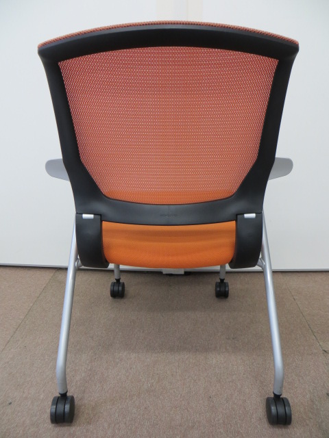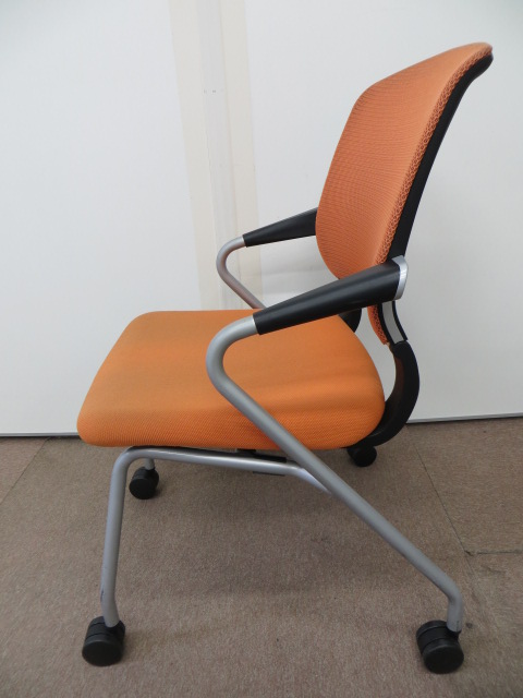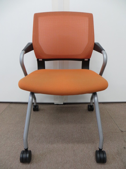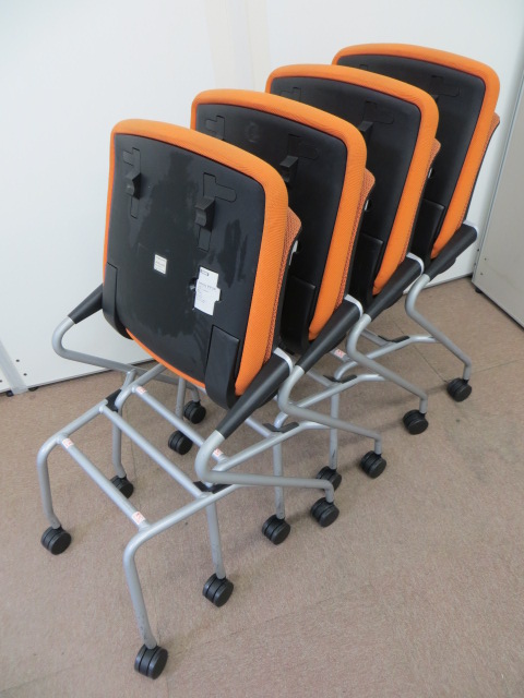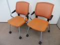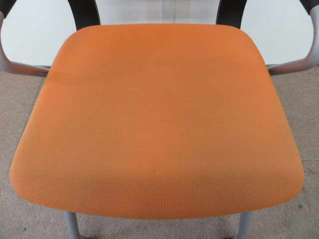 【重ねて省スペース】平行に重ねることができるミーティングチェア2脚セット 鮮やかなオレンジ【中古オフィス家具】- 在庫数