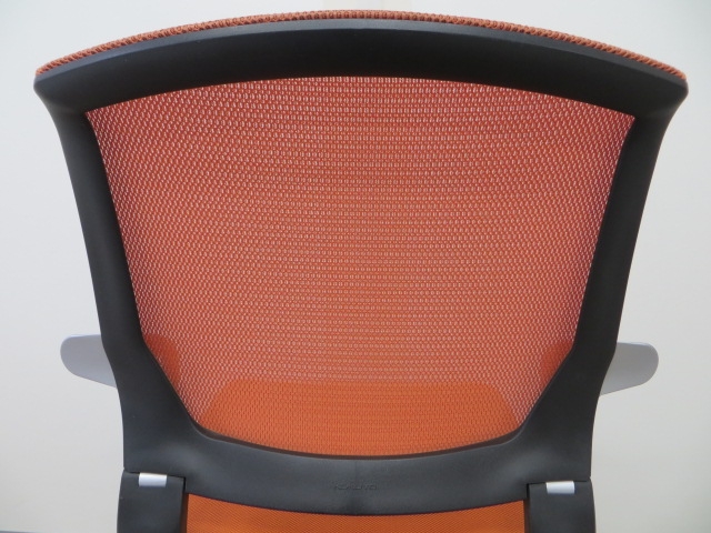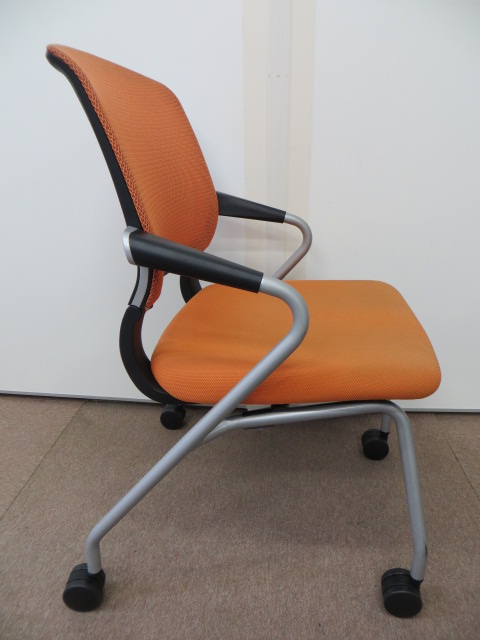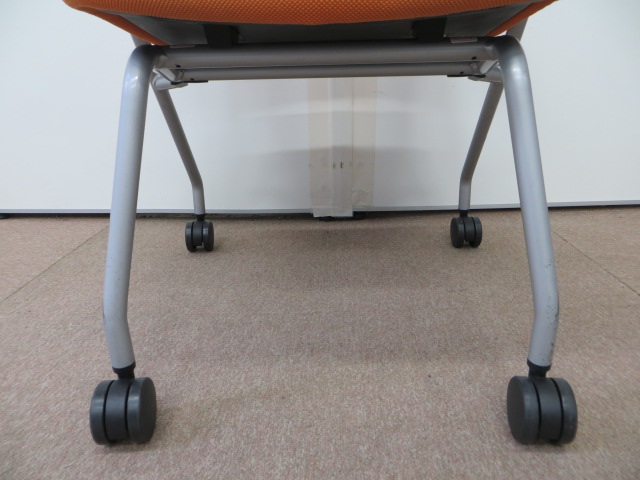【重ねて省スペース】平行に重ねることができるミーティングチェア4脚セット 鮮やかなオレンジ【中古オフィス家具】- 在庫数