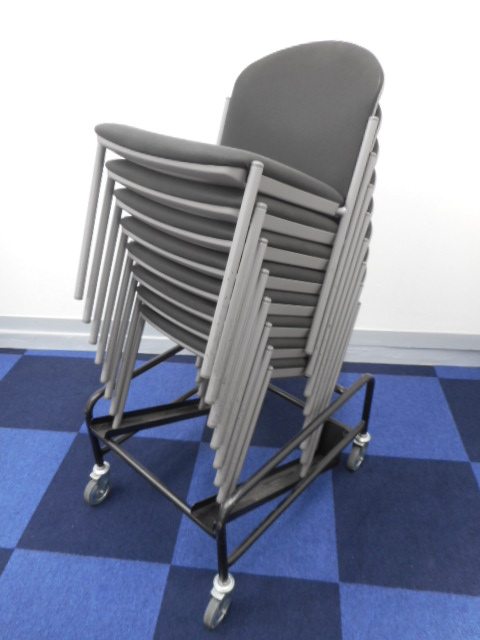 【KS】[状態良好][大量入荷中揃いでお探しなら絶対おすすめ!!]スタッキングタイプのミーティングチェア 収納用カート付で便利!- 茨城南店