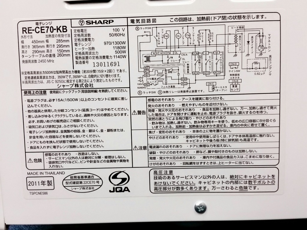 【2011年製造の比較的新しいオーブンレンジ】■SHARP ■人気のホワイト家電 ■一人暮らし用にいかがでしょうか- 在庫数