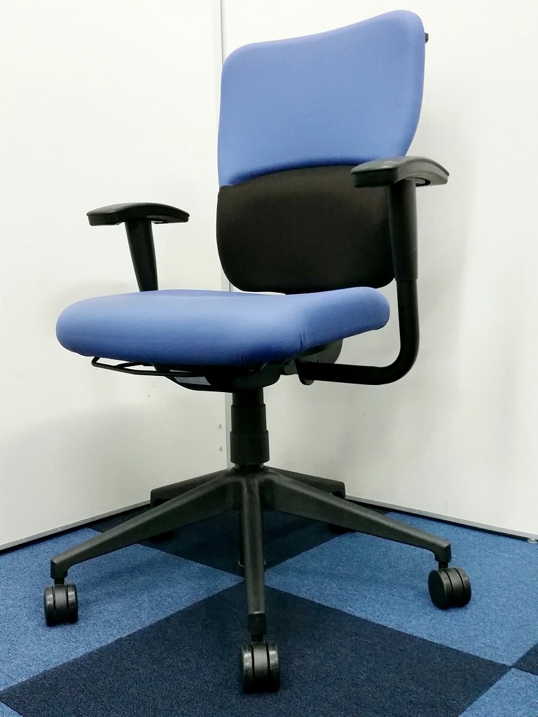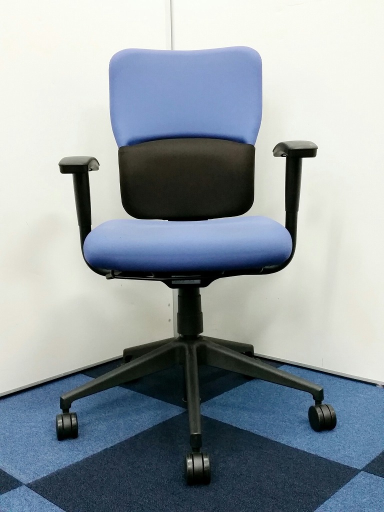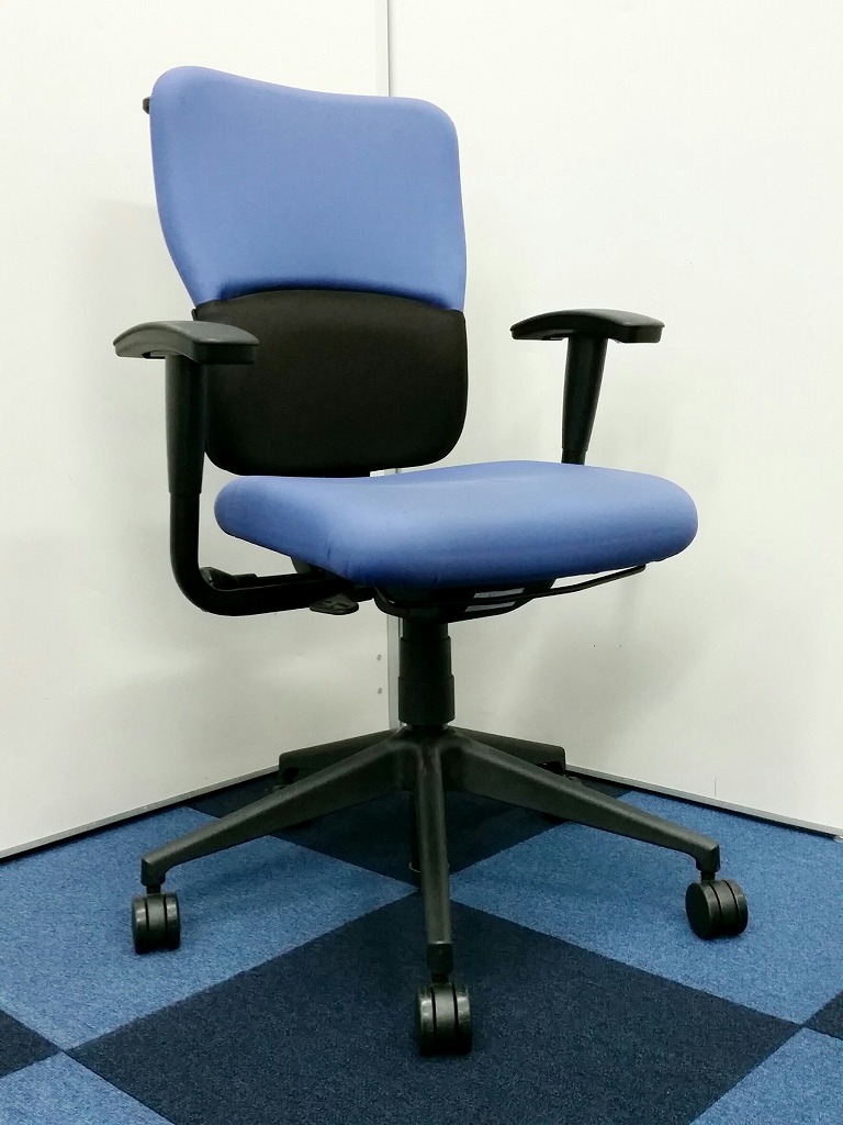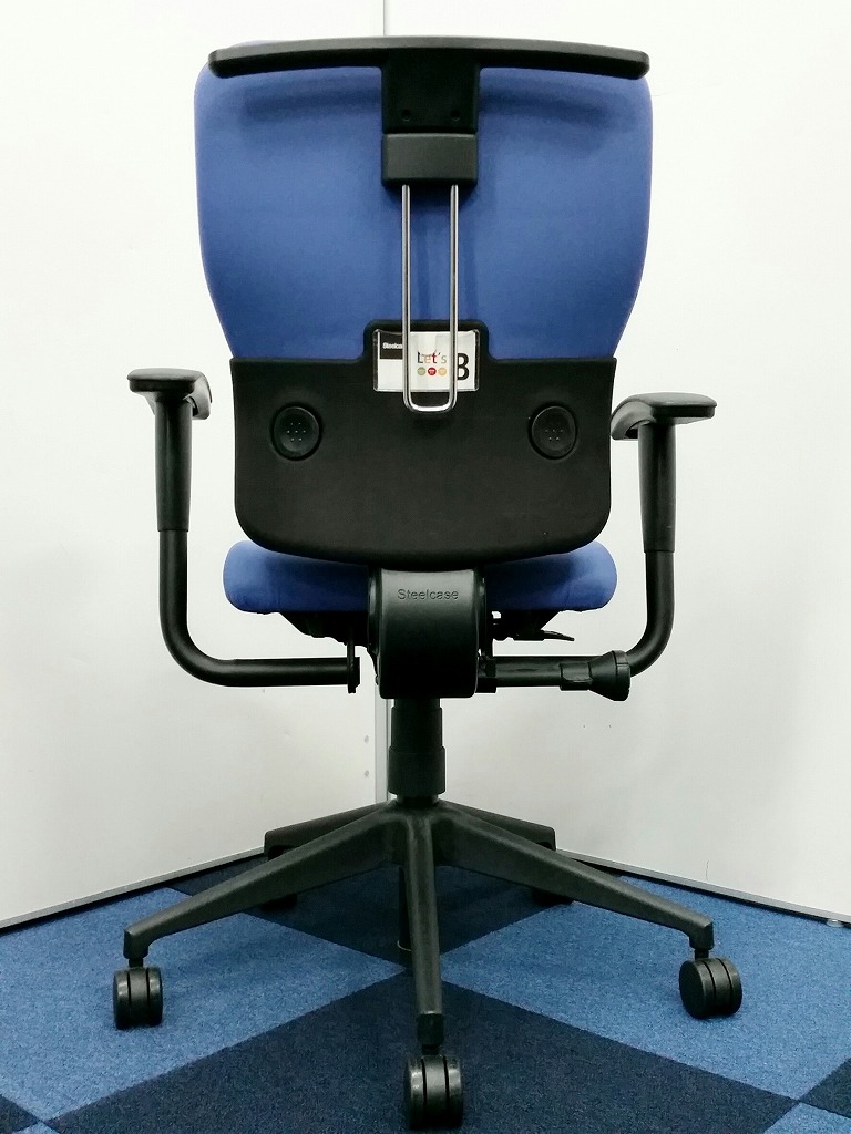 【背もたれが上下に可動します!!】■steelcase ■レッツビー ■オシャレなブルー色 ■5脚揃います ■コートハンガー付き- 在庫数
