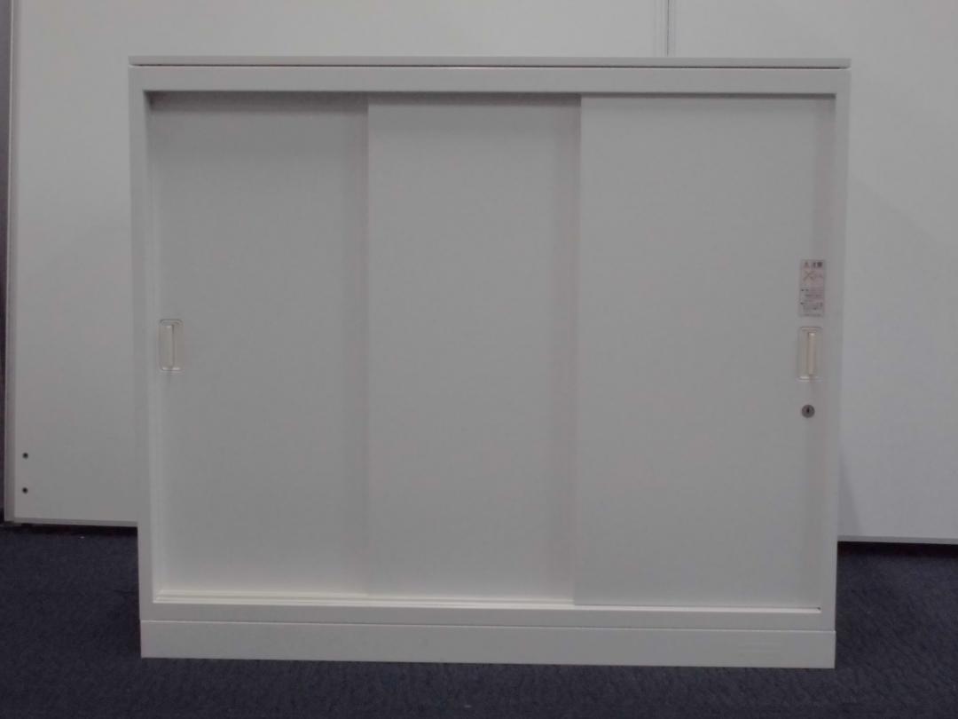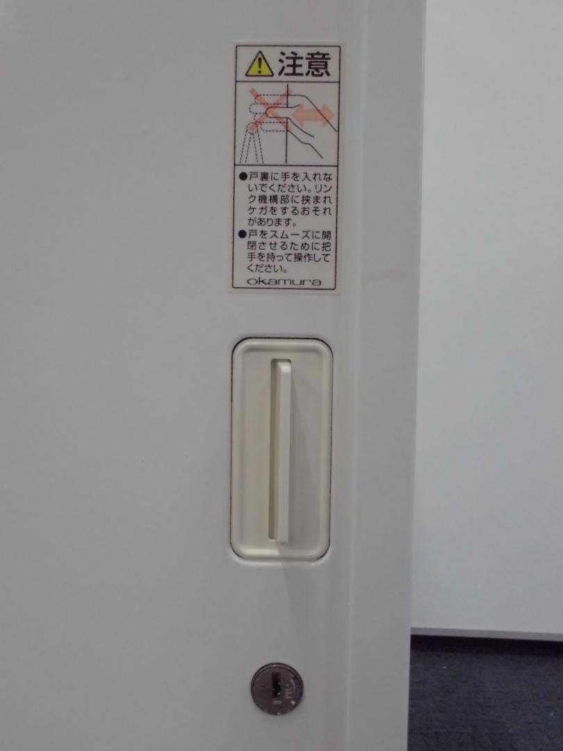 オカムラ製 人気レクトラインシリーズ ホワイト シリンダー W800xD450XH1050 3枚引戸 ※ベースなし 3枚引き違い書庫!!
