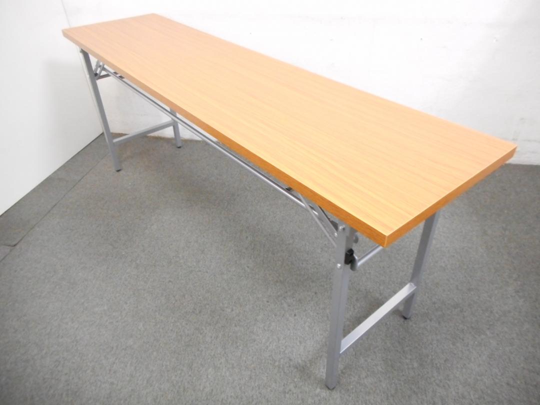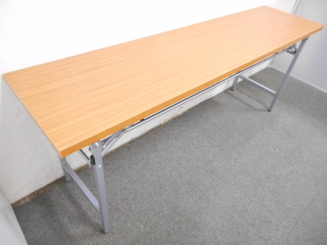 ■折りたたみテーブル【チーク・木目柄】■一番人気のW1800×D450サイズ!■会議用・作業用・イベント用などに使えます!- 川崎店