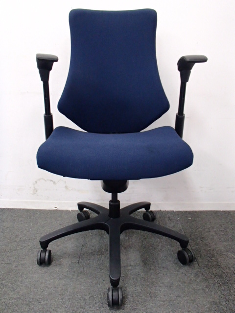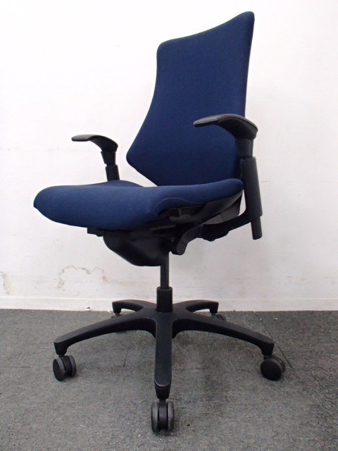 【包み込まれるフィット感!】 ■イトーキ製 エフチェア 肘付 ネイビーブルー ■デスクワークの疲労を軽減!