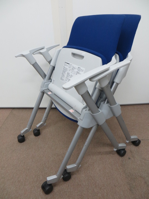 【おつとめ】コクヨ製アンフィ 肘付ミーティングチェア2脚セット 平行に収納可能【中古オフィス家具】- 在庫数