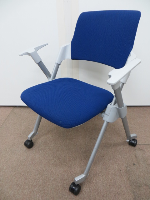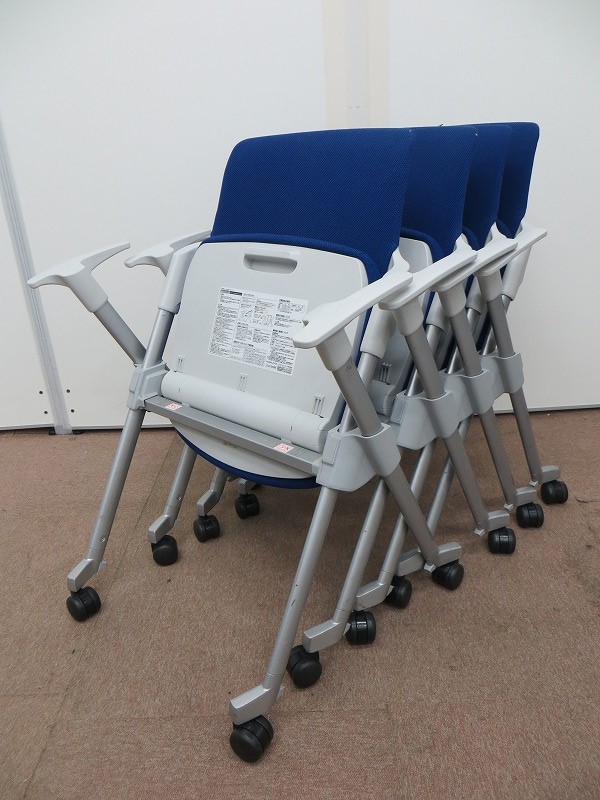 【おつとめ】コクヨ製アンフィ 肘付ミーティングチェア4脚セット 平行に収納可能【中古オフィス家具】- 在庫数