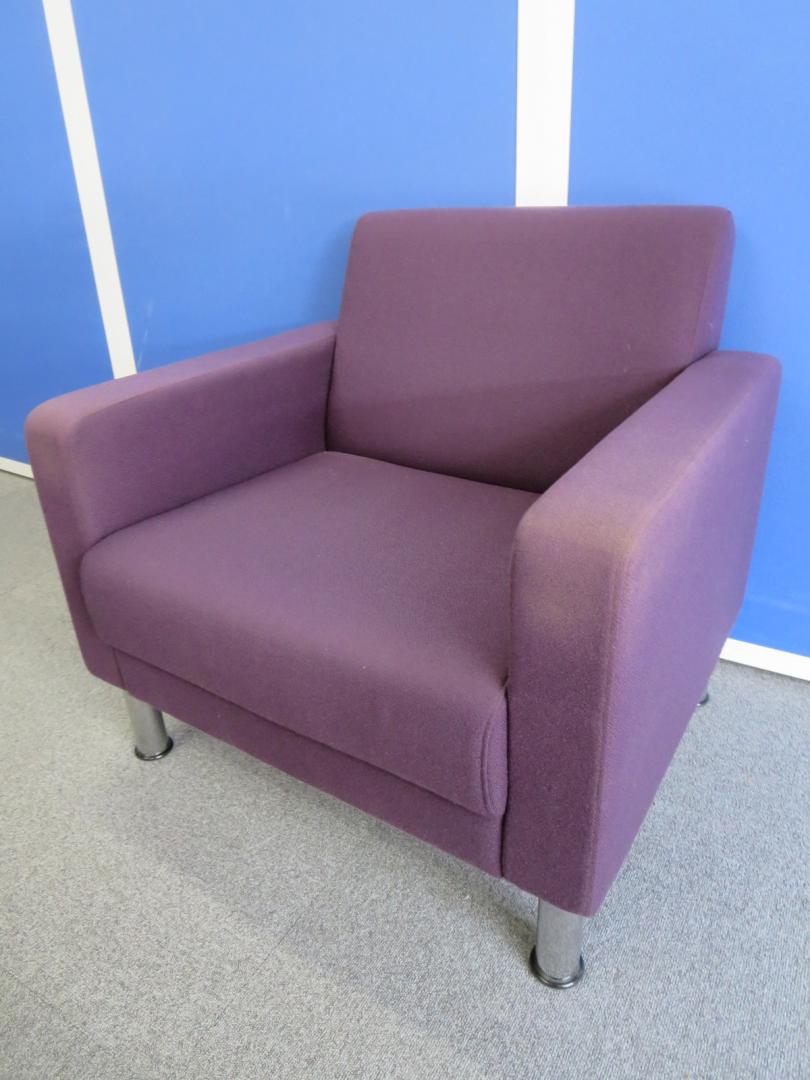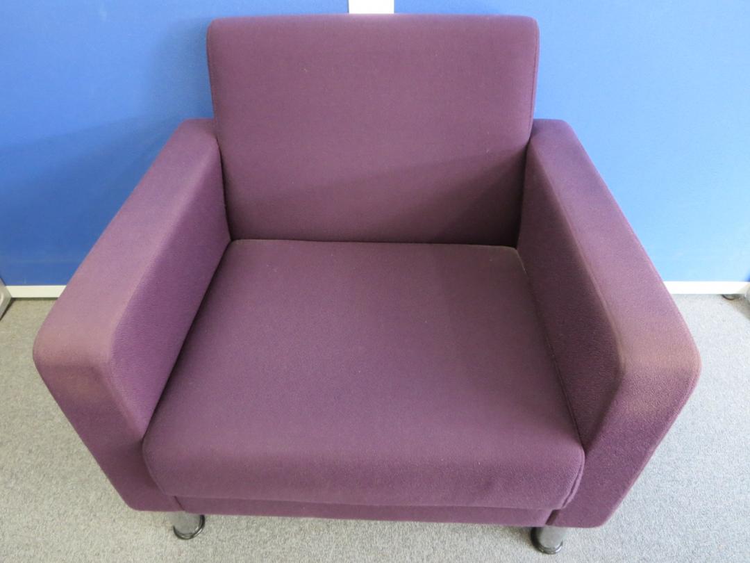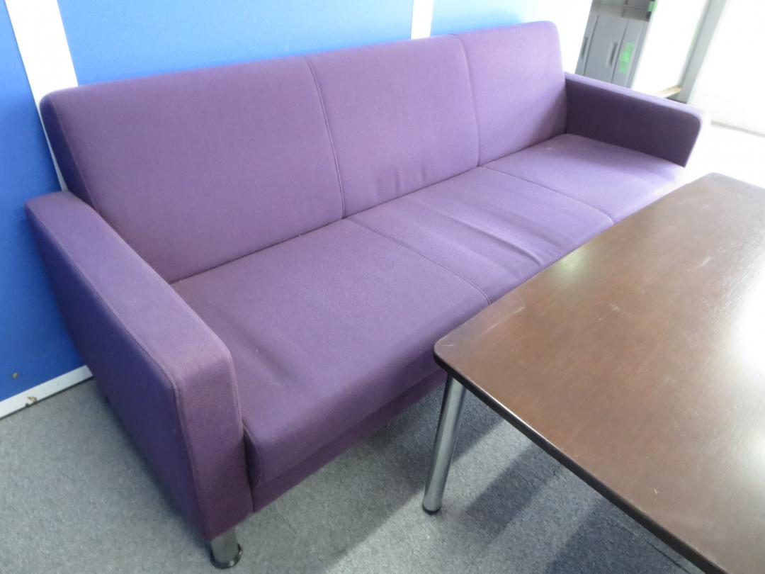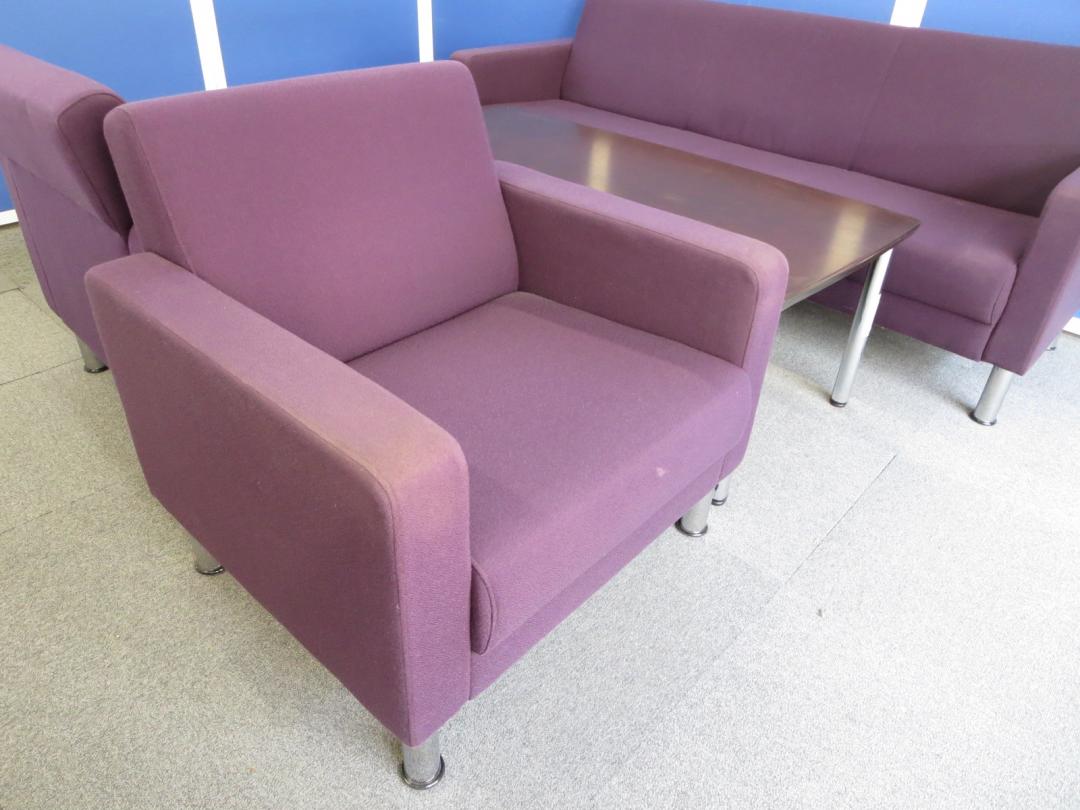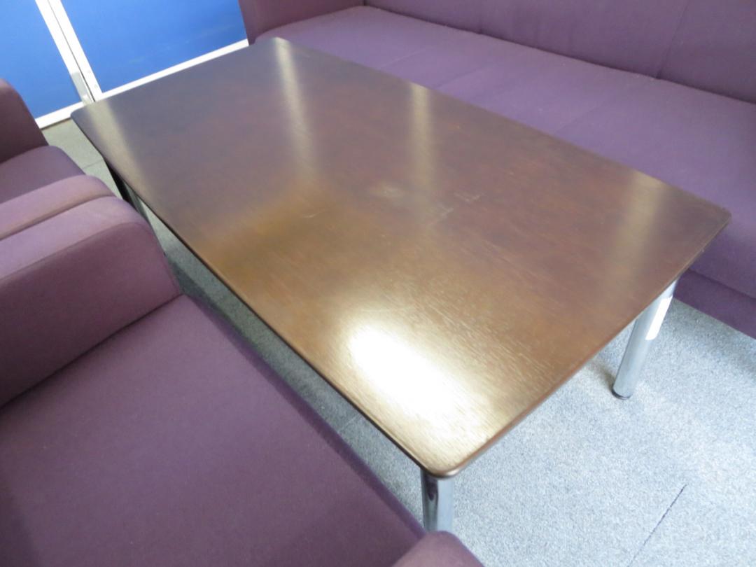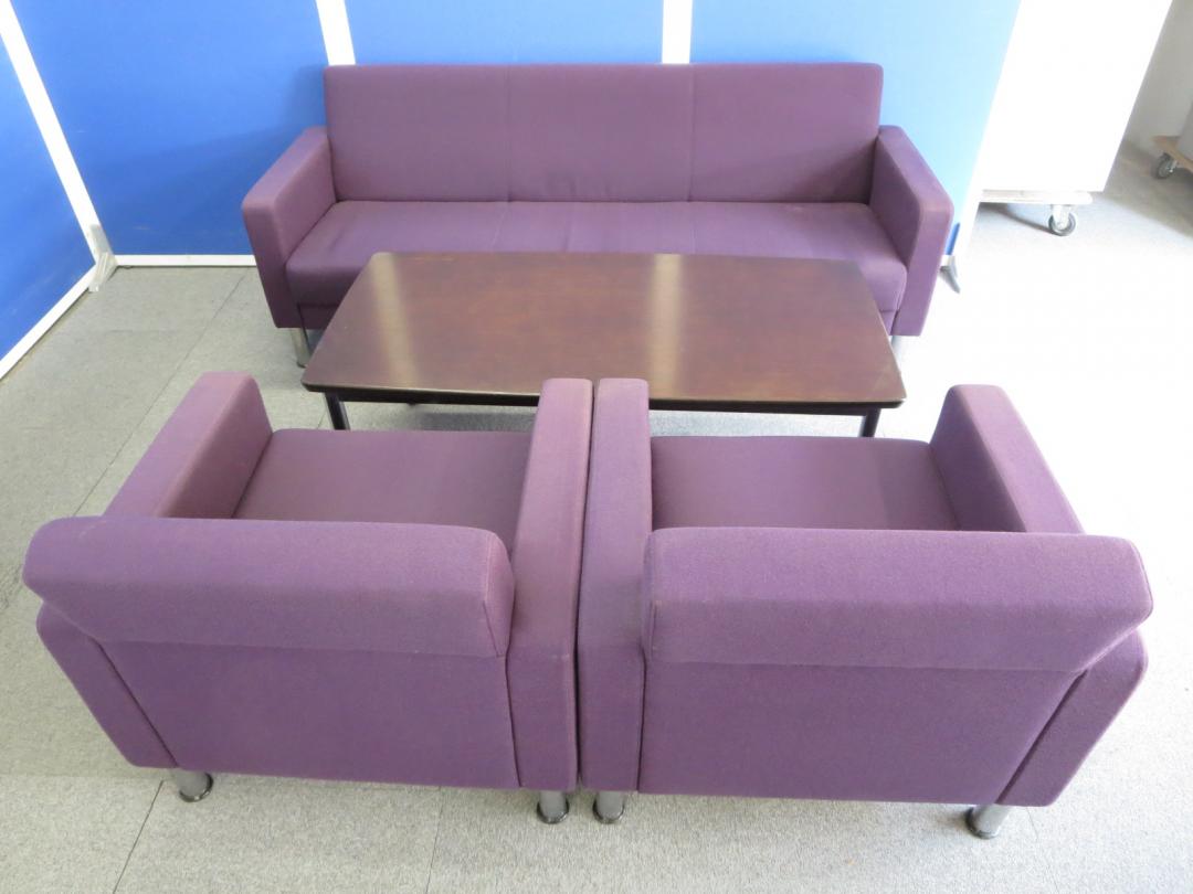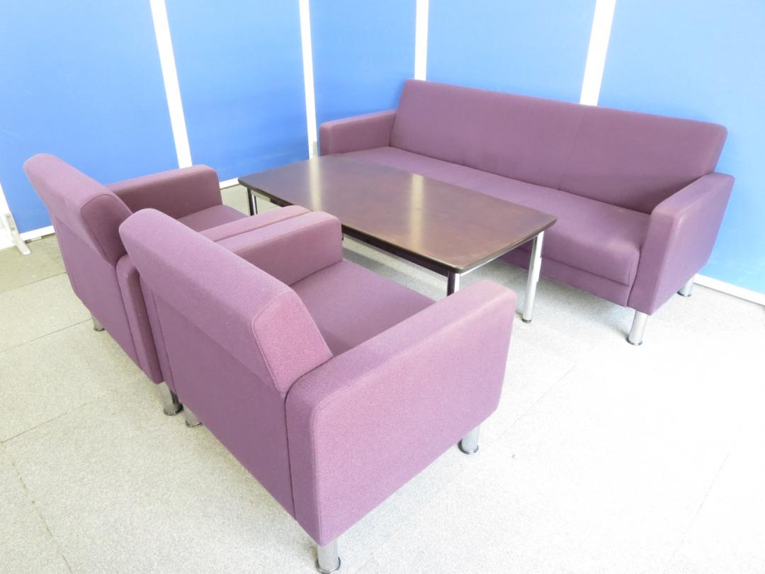 【リラックスした雰囲気の面談にご利用ください!】■イトーキ製 応接セット(アームチェア×2、ソファ×1、テーブル×1) ■レーズンブラウン色(布地)- 川崎店