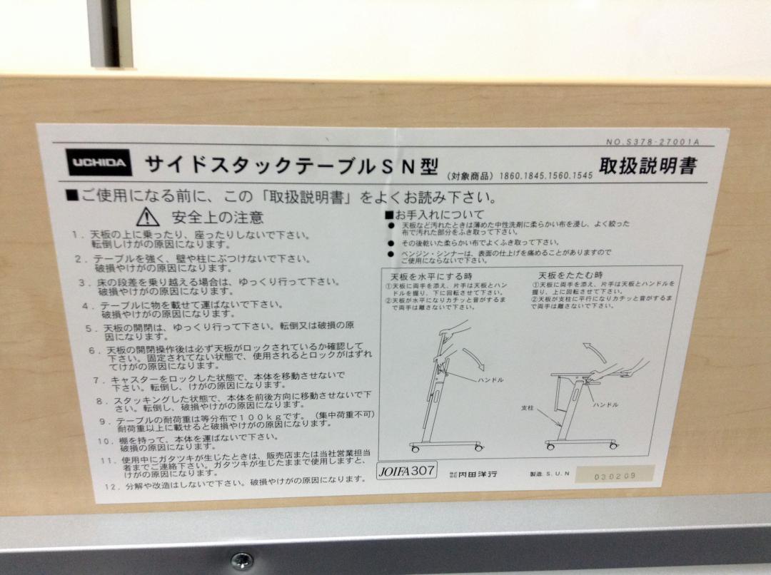 - 一部不具合あり天板歪み、アジャスター無し、キャスター使用不可ようなそのテーブルの本来の効用を果たすための機能以外の一部が使用不可な状態。(例、キャスターロッ ク機能使用不可、棚板無し等がある。)