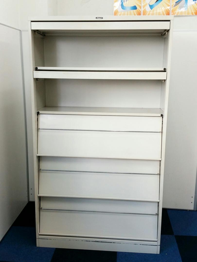 - 一部不具合ありそ引出の開閉不可、施錠不可、棚板無しといったの書庫の本来の効用を果たすための機能以外の一部が使用不可(例、扉、引出の開閉がしづらいなどがある。 )