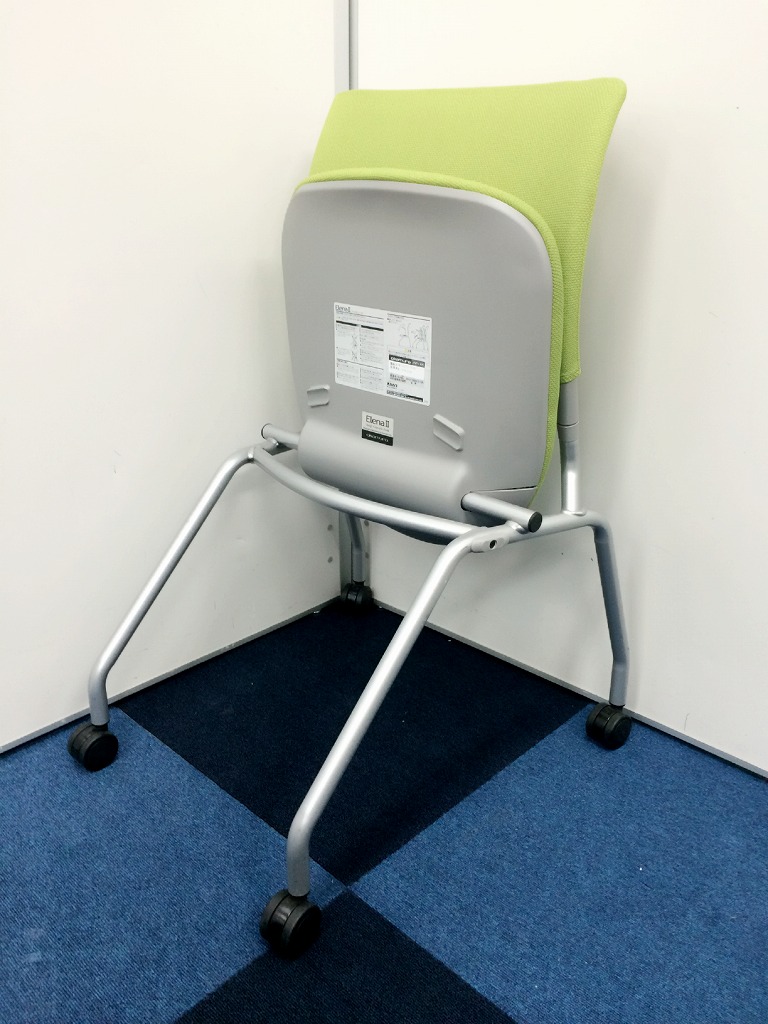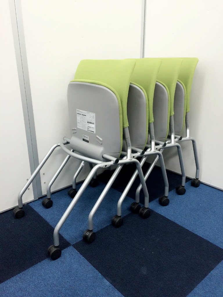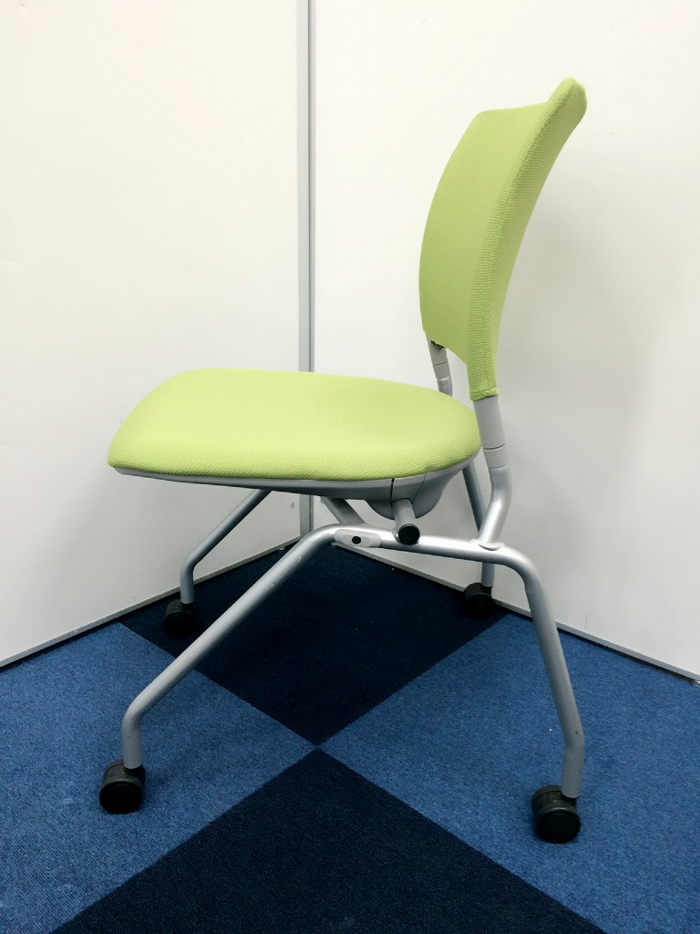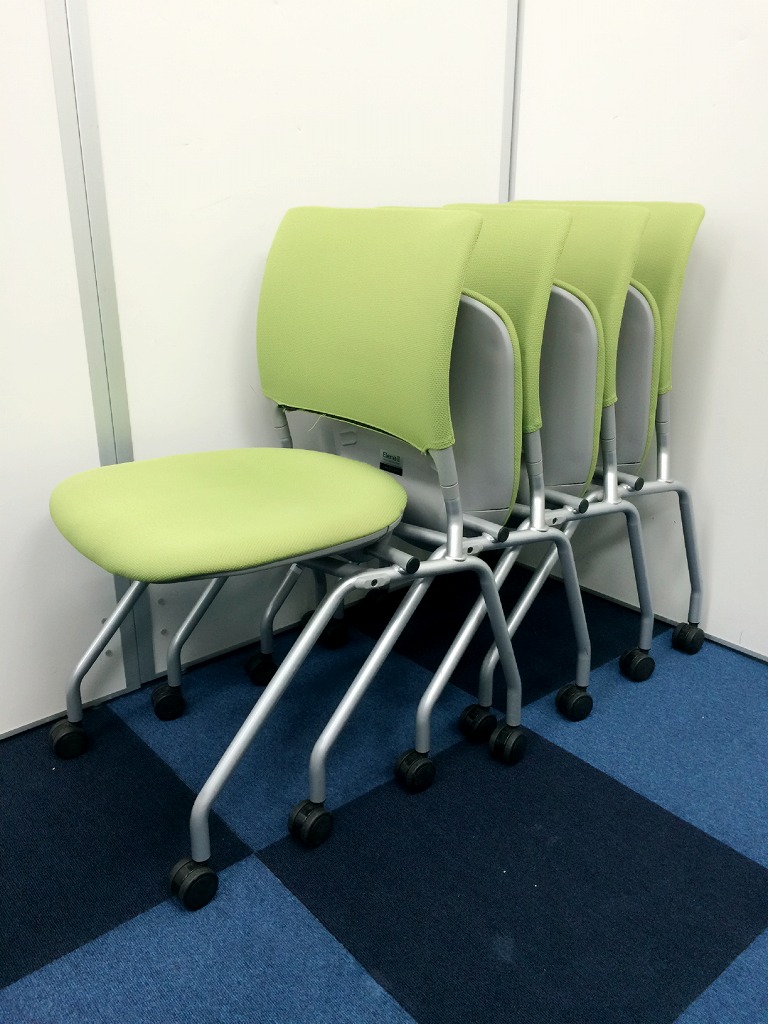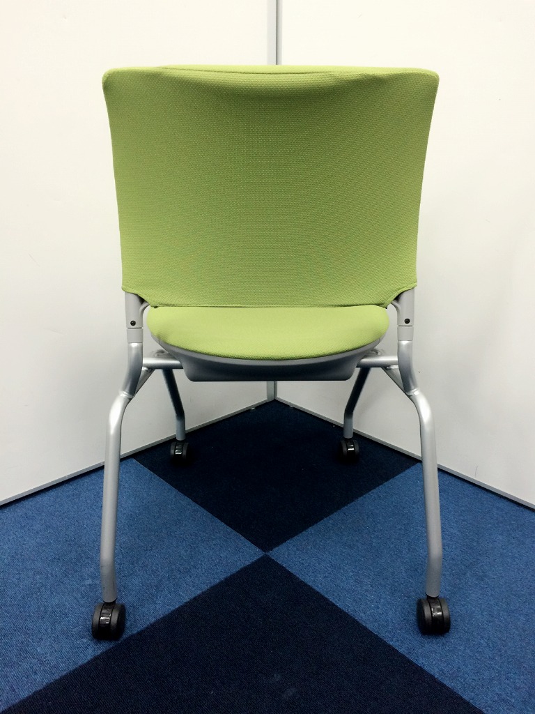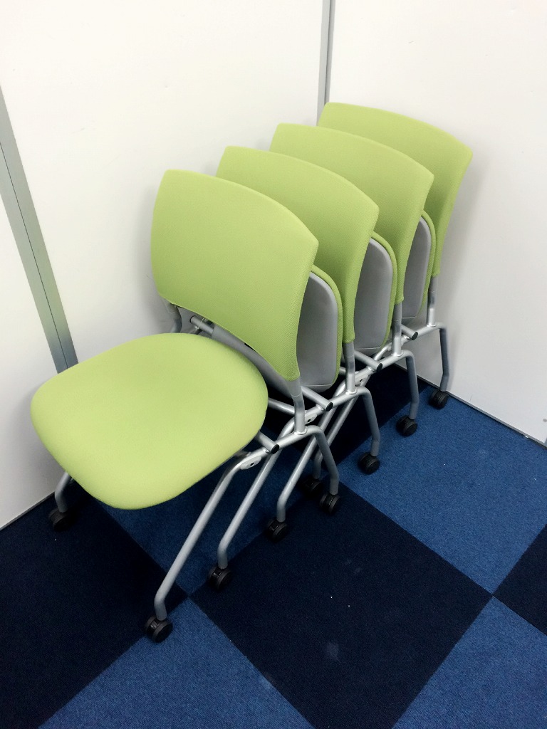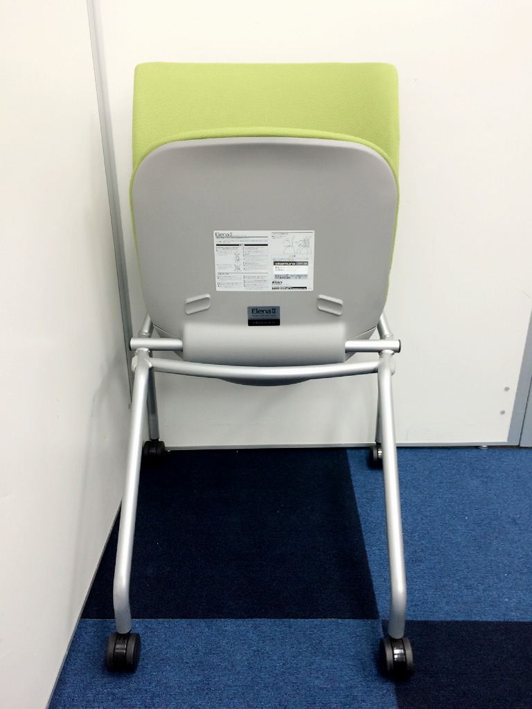 【大量20脚入荷!オカムラ製のネスティングチェア】■オカムラ ■エレナⅡ ■きれいなライトグリーン ■座面が折りたためるタイプ- 在庫数