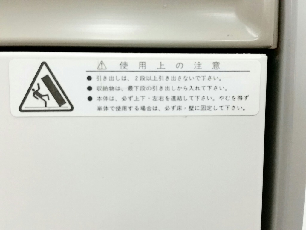 - 一部不具合ありそ引出の開閉不可、施錠不可、棚板無しといったの書庫の本来の効用を果たすための機能以外の一部が使用不可(例、扉、引出の開閉がしづらいなどがある。 )
