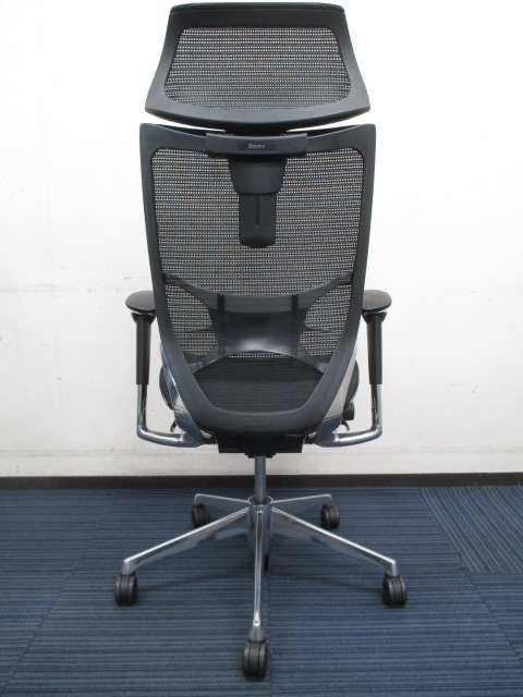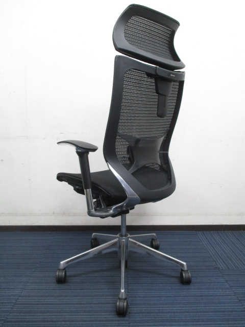 【オフィスの執務室、会議室におすすめ!】■オカムラ(okamura)製 バロン(Baron)チェア 肘付き ハイバック ■背・座面メッシュ ■可動肘 ■ヘッドレスト付き ■ブラック【硬めの座面が大人気!国産メッシュチェアの代表格!】