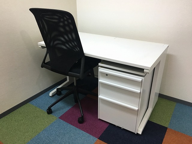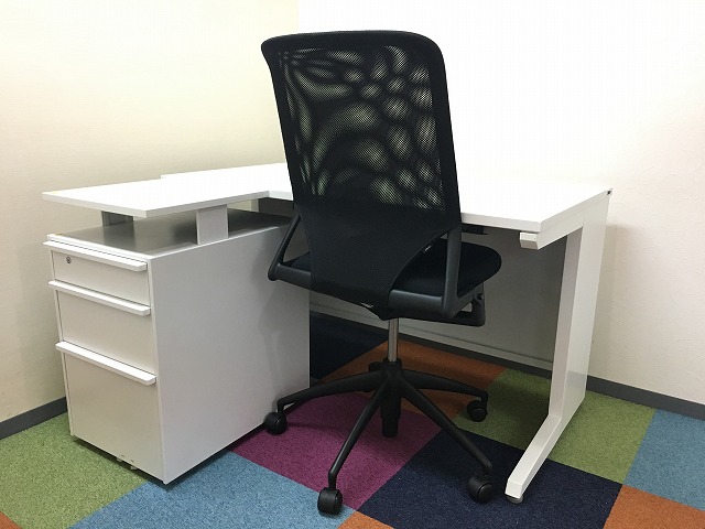 チェアはデスクの上や中に入れて保管しております。もちろん試座も可能ですので、お気軽にお申し付けください!