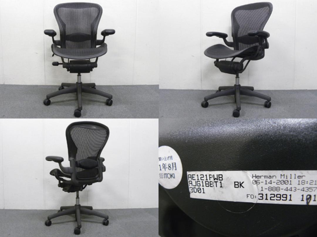 【★状態イマイチのためお安く!】■ハーマンミラー製 アーロンチェア Bサイズ 固定肘 ※キズあり・ランバーサポート無・昇降ガス圧弱めのためお安く!【訳あり特価品】