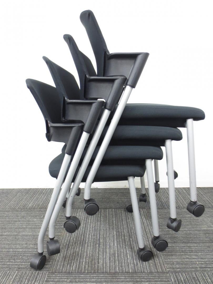 【セット商品(チェア×4脚)】【シンプルスマートなスタッキングチェア!分厚いクッションで長時間でも快適な座り心地!】/オススメ(おすすめ) /人気商品【弊社使用欄:A01037619】■スタッキングチェア 肘付ミーティングチェア ■固定肘 ■キャスター付 ■ブラック ■背面樹脂/コクヨ(KOKUYO/プロッティ