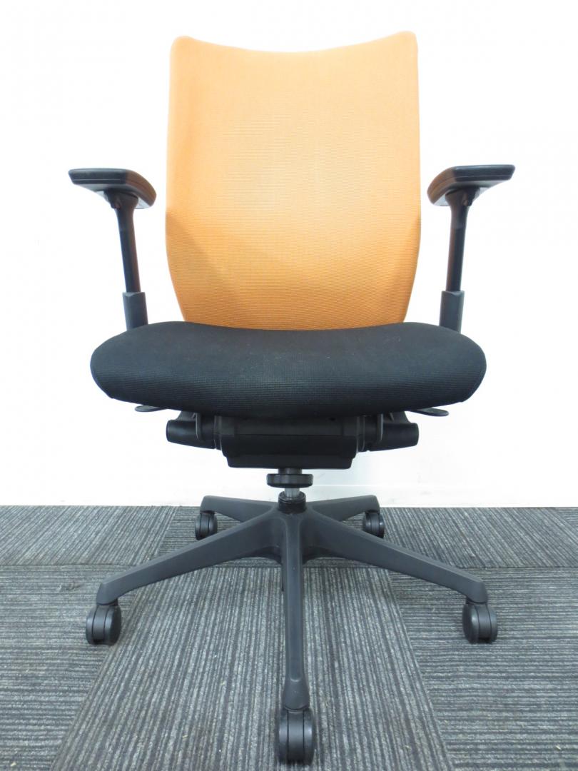 【2脚入荷】【デザイン性の高い人気商品!】■オカムラ製 ヴィスコンテチェア(オレンジ・可動肘タイプ)■【専門業者により100%クリーニング済み!】【おすすめ商品】サーキュラーバリューCO2削減量の算出について
