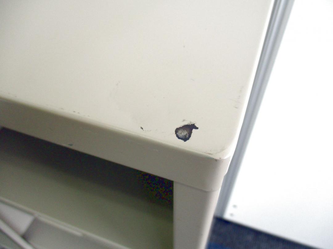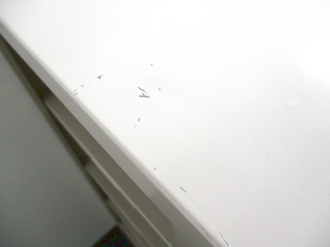 - かなり強い黄ばみ・変色が商品全体にある。(例、天板、正面、背部、サイド部分にある。)