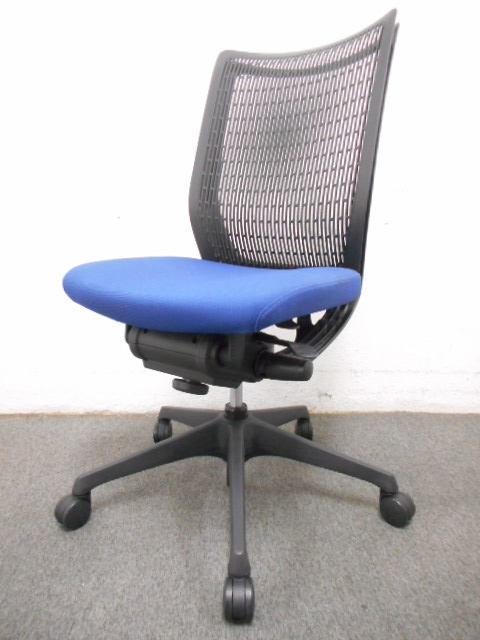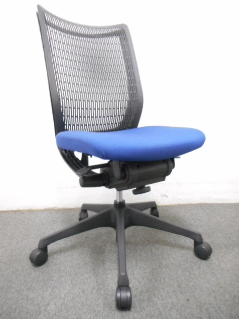 ■オカムラ ヴィスコンテチェア 肘無 ブルー【フリーリクライニング】■【Okamura Visconte】- 川崎店