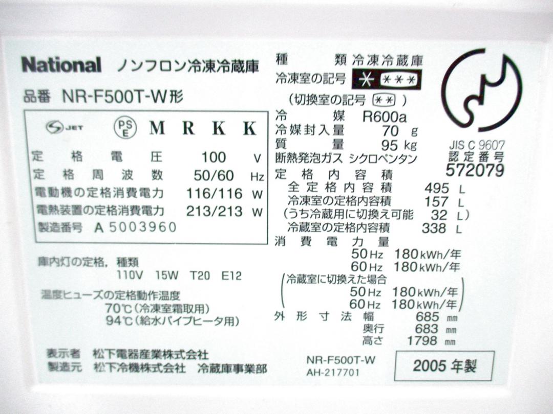 【中古】 NR-F500T-W 冷蔵庫 177726