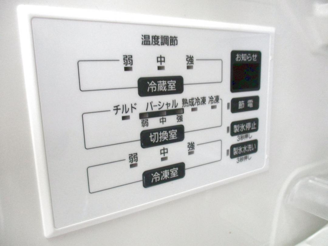 上段が冷蔵室、2段目に製氷室、小型冷凍室(冷蔵に切り替え可能)