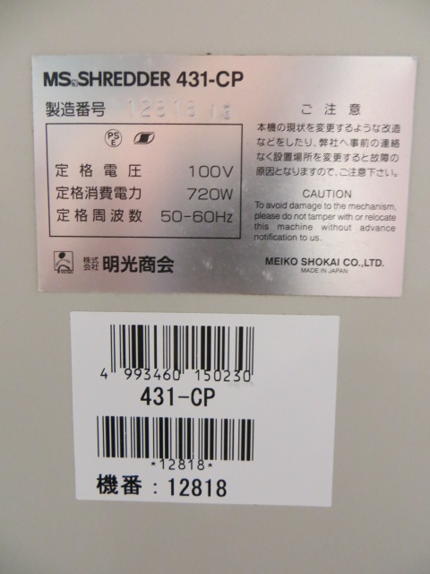 【中古】 MS-431CP 明光商会 シュレッダー 177765