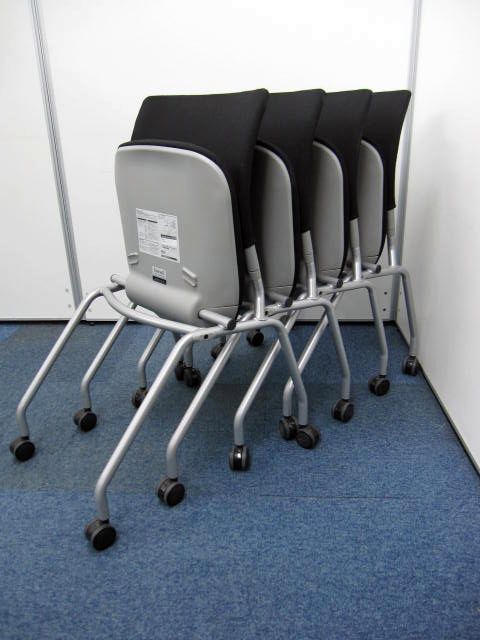 【定番】ネスティングチェア オカムラ エレナⅡ ミーティング ブラック 【在庫4脚】スプリングセール \5,000⇒\4,000- 品川・三田店