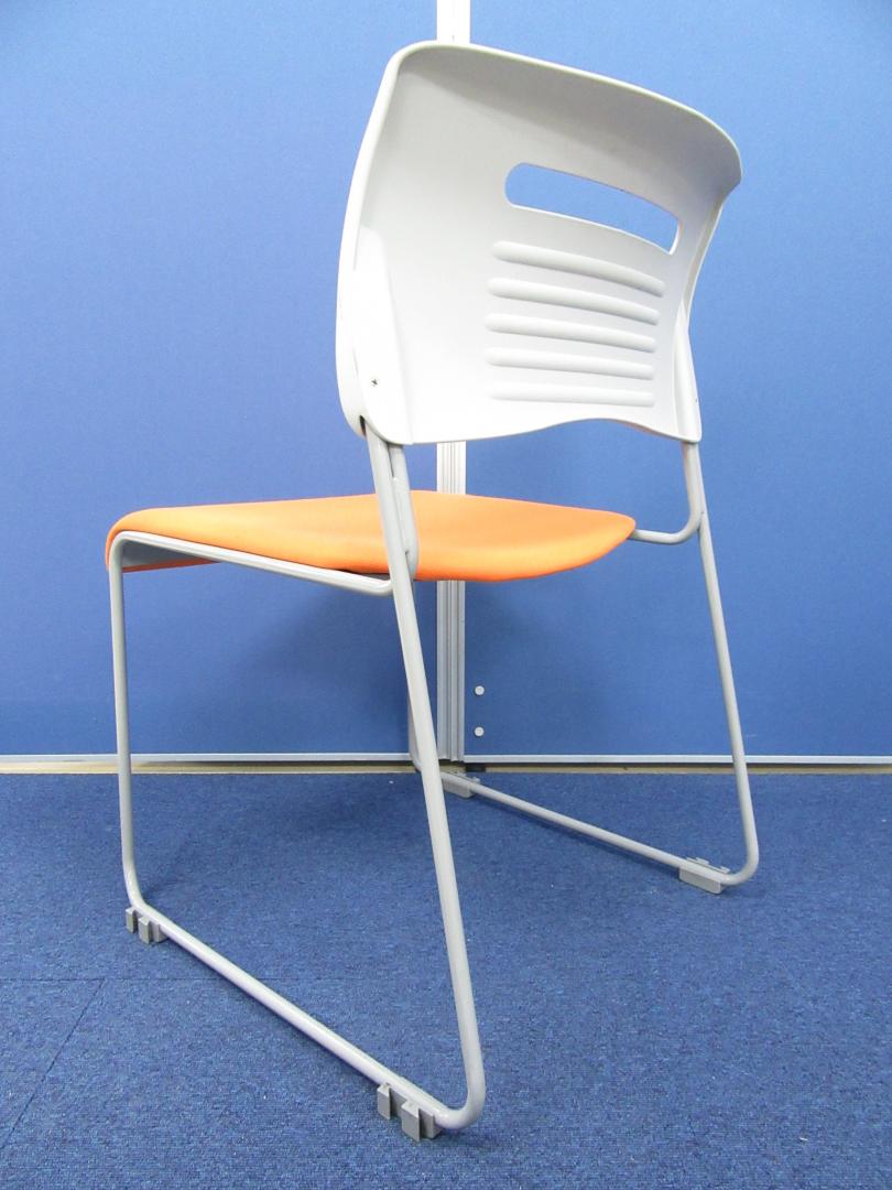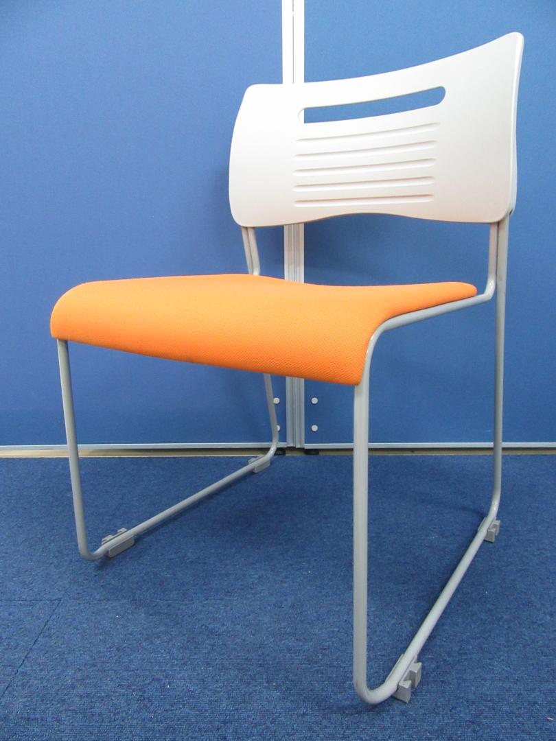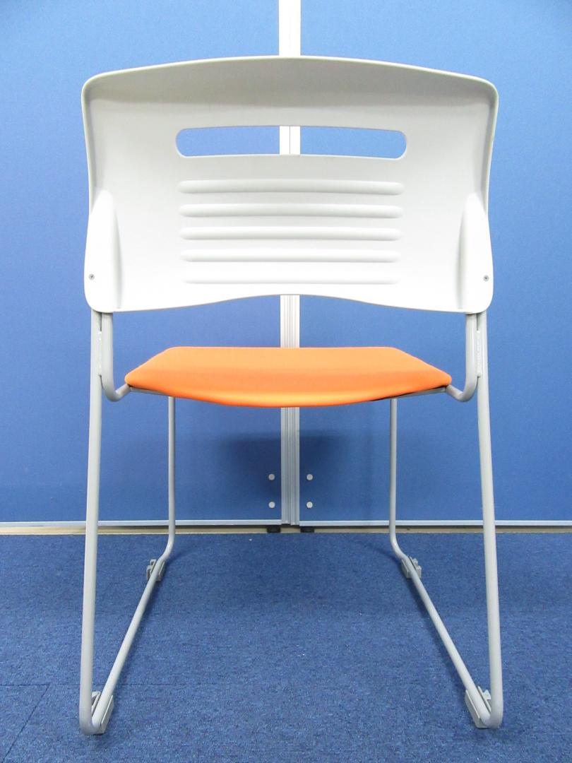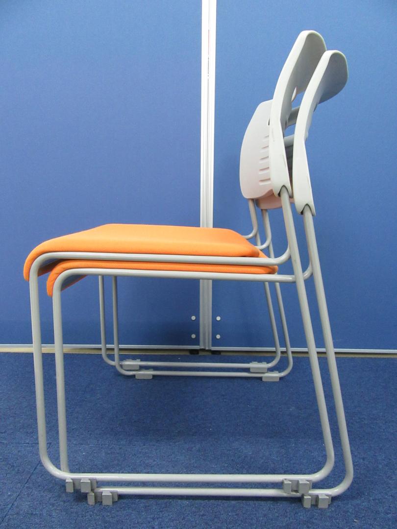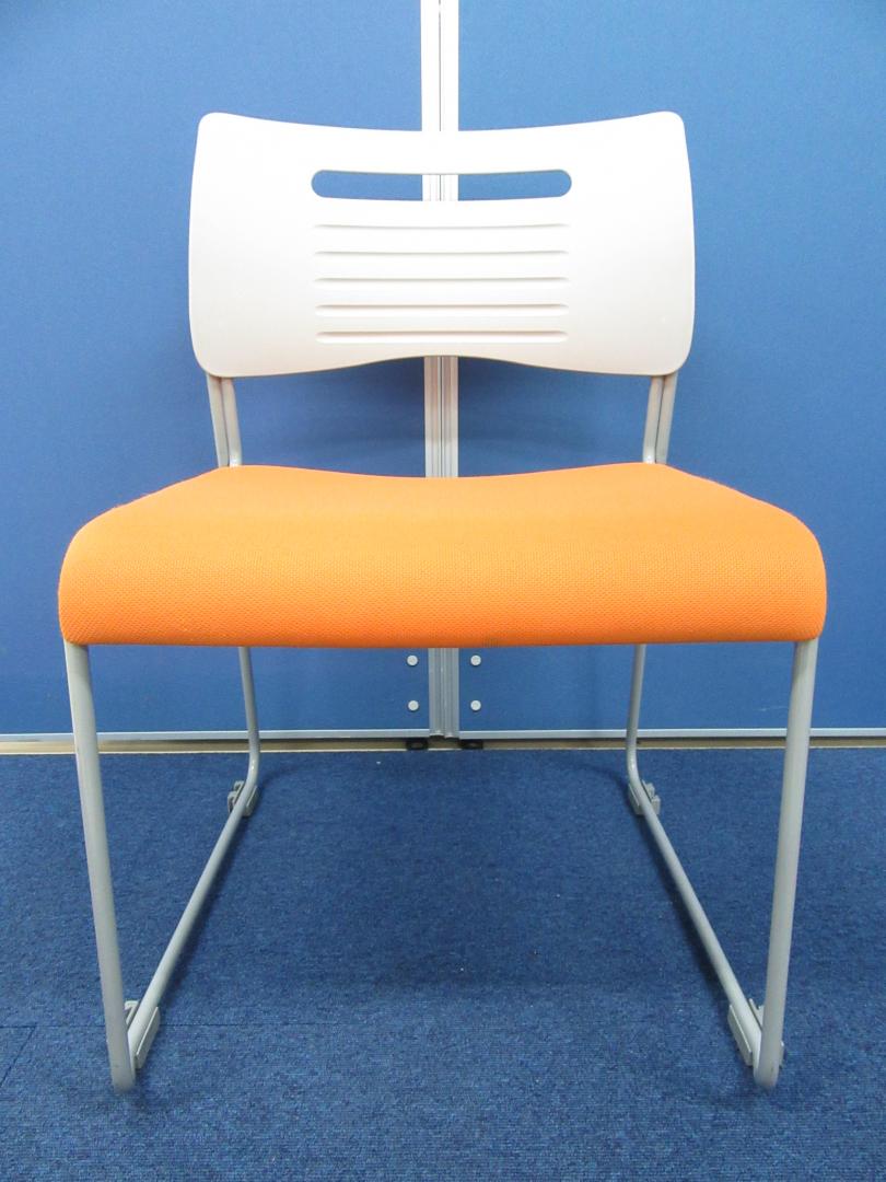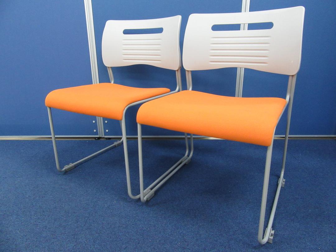 [2脚セット]井上金庫製 スタッキングチェア 発色のいいオレンジ色■ミーティングやセミナー、研修等におすすめです!!使用しない時は、重ねて収納頂けます!!- 足立・葛飾店