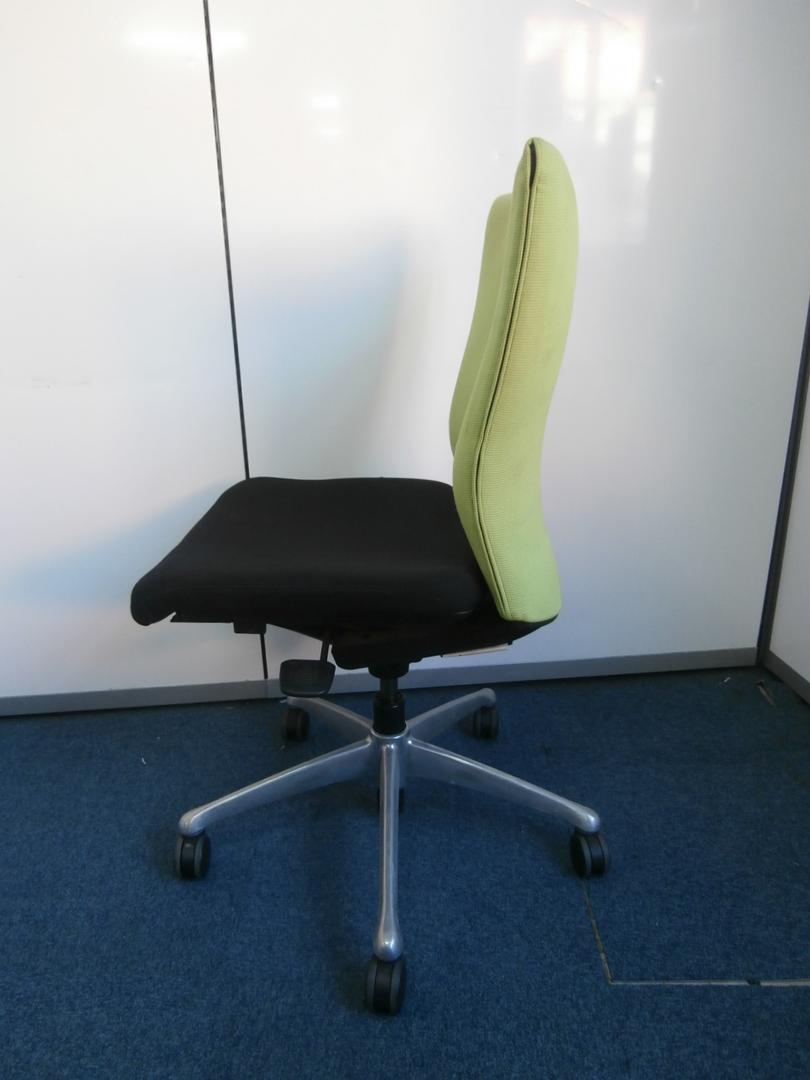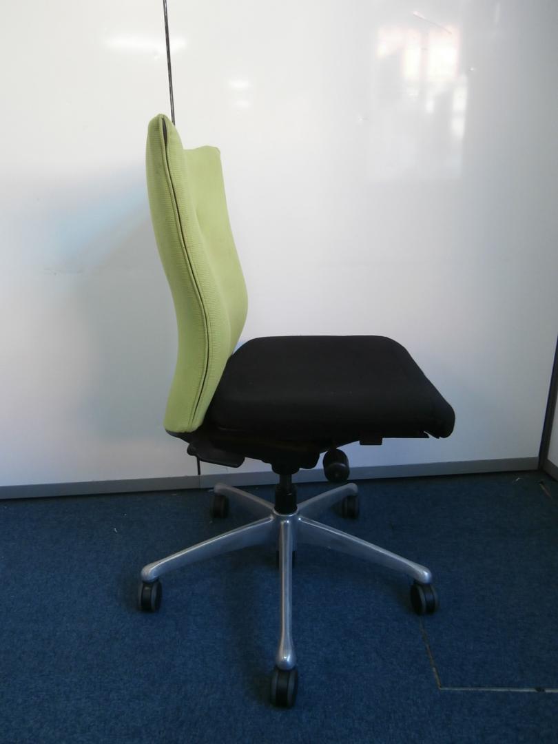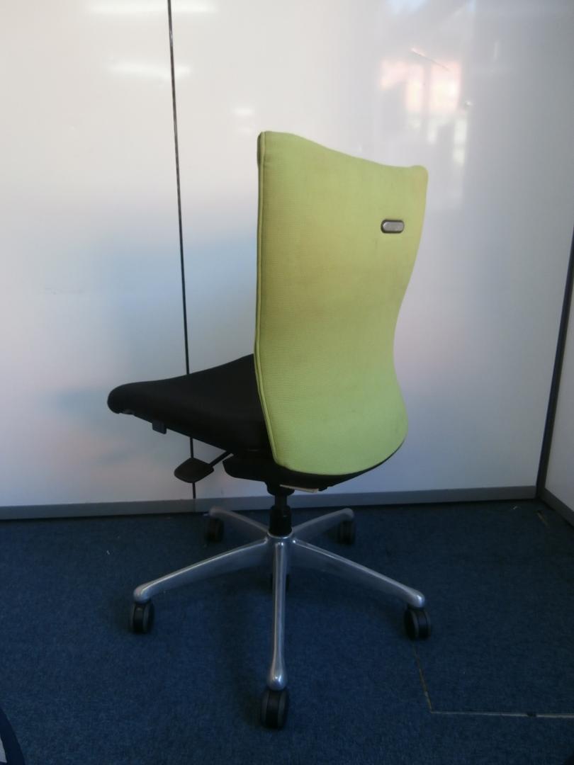 オカムラ製 フィーゴ シームレスタイプ ブラック×ライトグリーン【機能とデザインを兼ね備えたチェア】肘外し